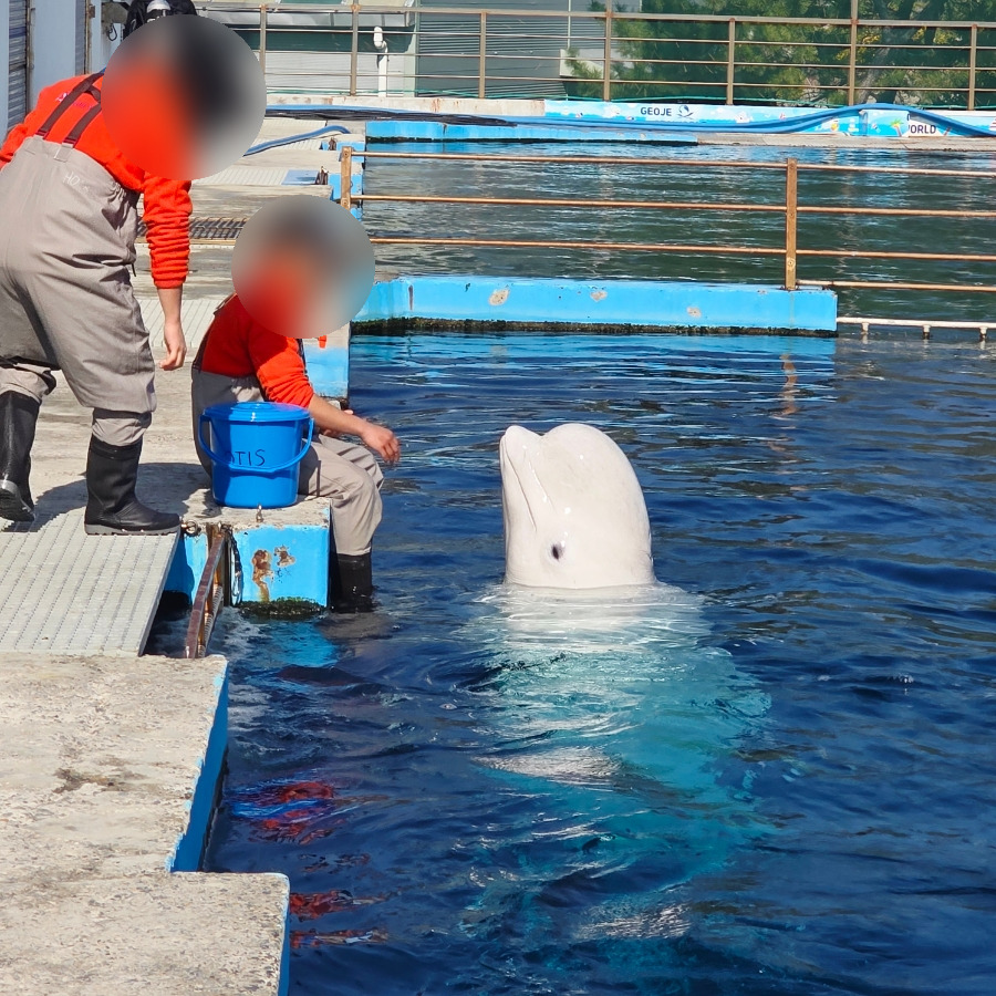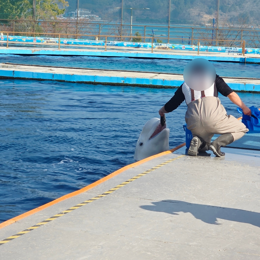조련사분에게 벨루가가 애교 부리는 게 너무 귀엽더라고요