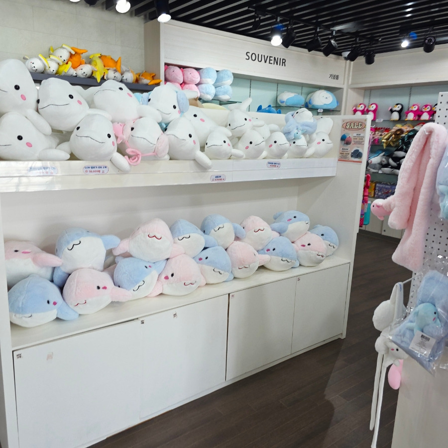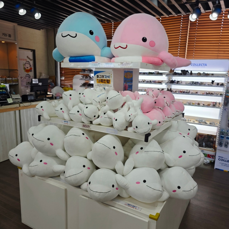 사진으로만 보던 흰 돌고래를 실제로 보니까 진짜 인형처럼 생겼더라고요