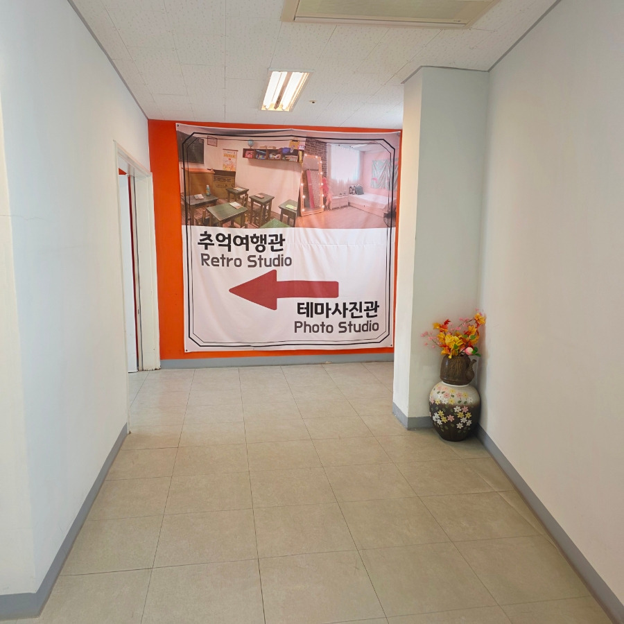3층에는 추억 여행관이라는 테마 촬영 공간이 있었는데 옛날 배경으로 사진 찍을 수 있게 꾸며져 있어서 잠깐 들러보기 좋았어요