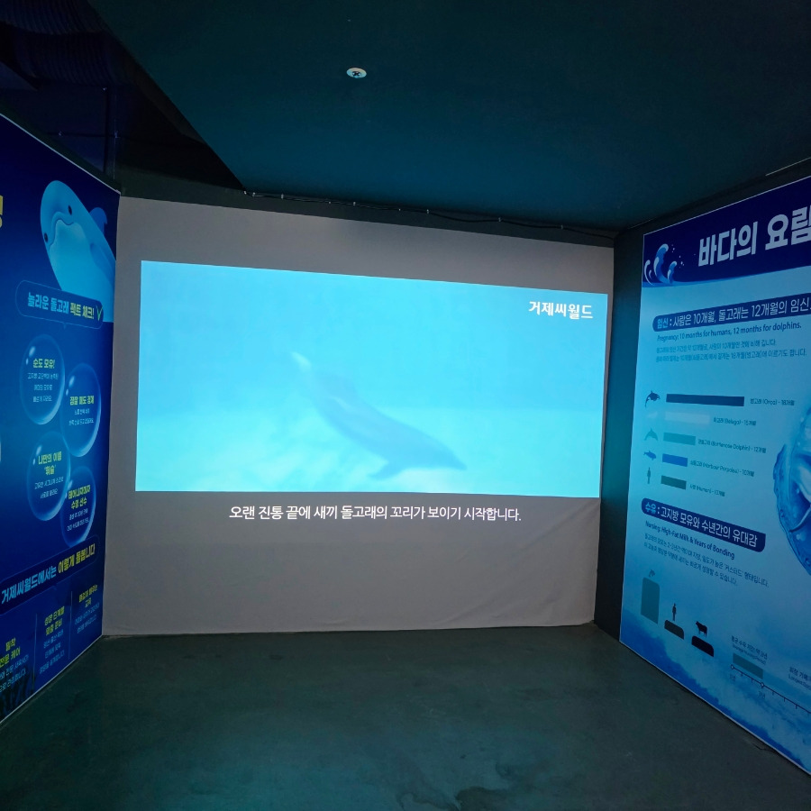 돌고래의 생애 여정을 영상으로 보여주는 공간도 있었는데