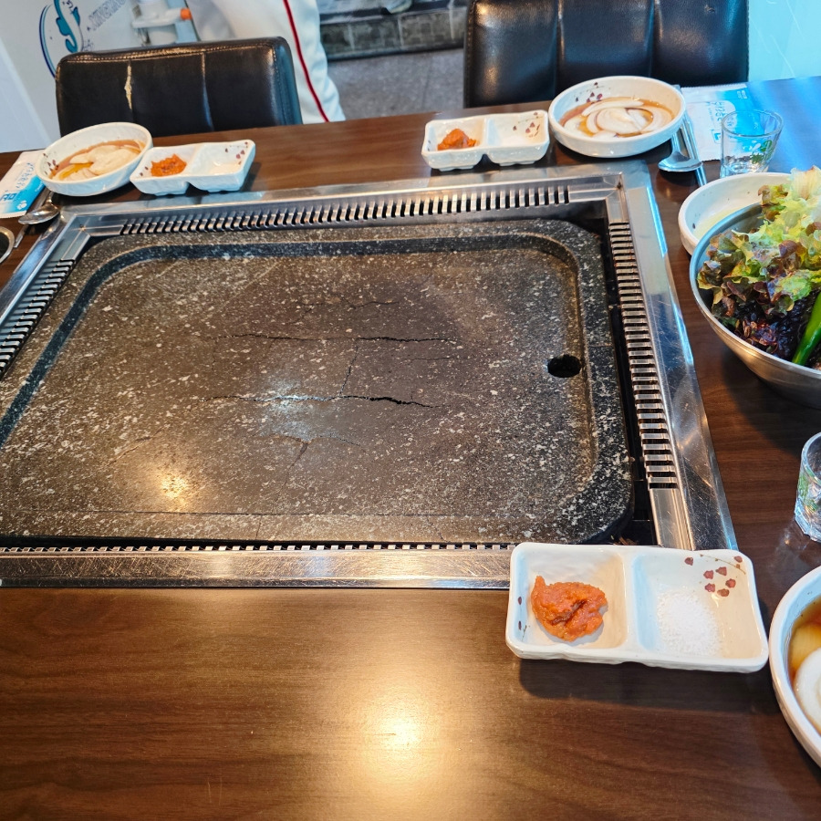 고기는 주문과 동시에 바로 돌판 위에 올려주시는데 이 집의 가장 큰 매력이 바로 돌판에 구워 먹는 고기였어요