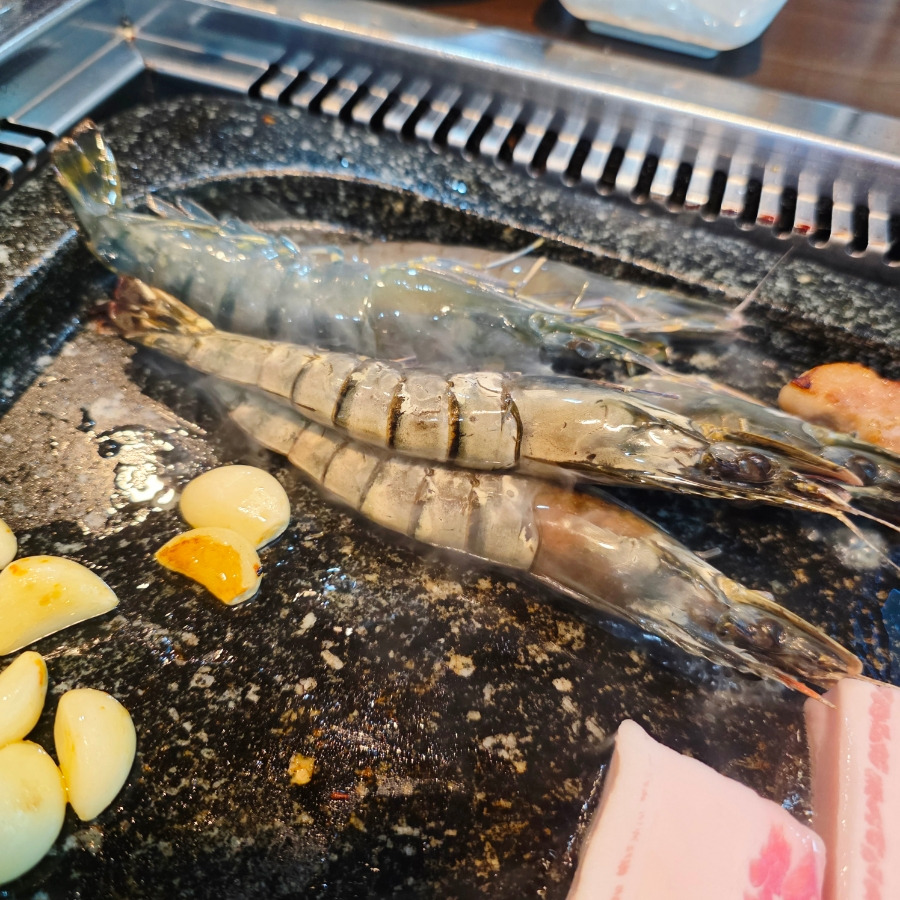 거기에 같이 나오는 두부와 새우도 돌판 위에 함께 올려 구워 먹을 수 있어서 더 좋았어요