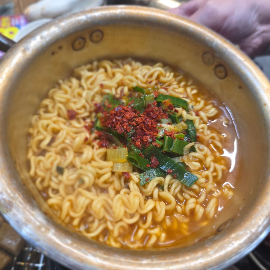 김치는 제 스타일은 아니었지만 라면 면발은 꼬들꼬들해서 괜찮았어요