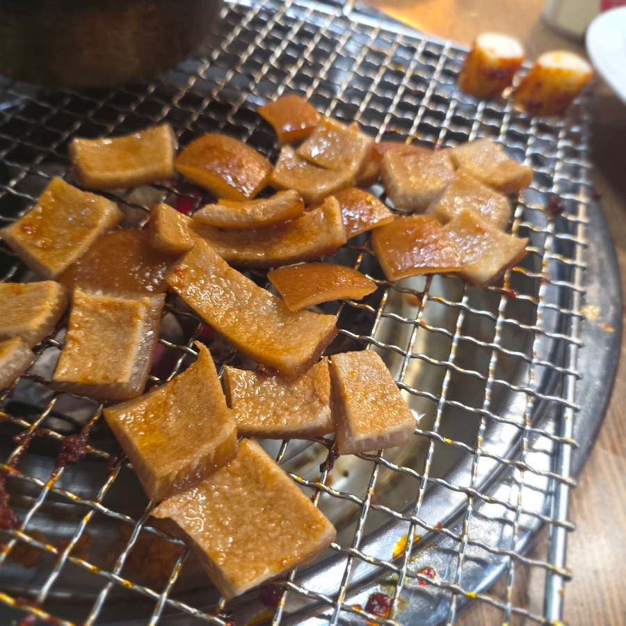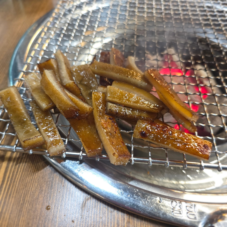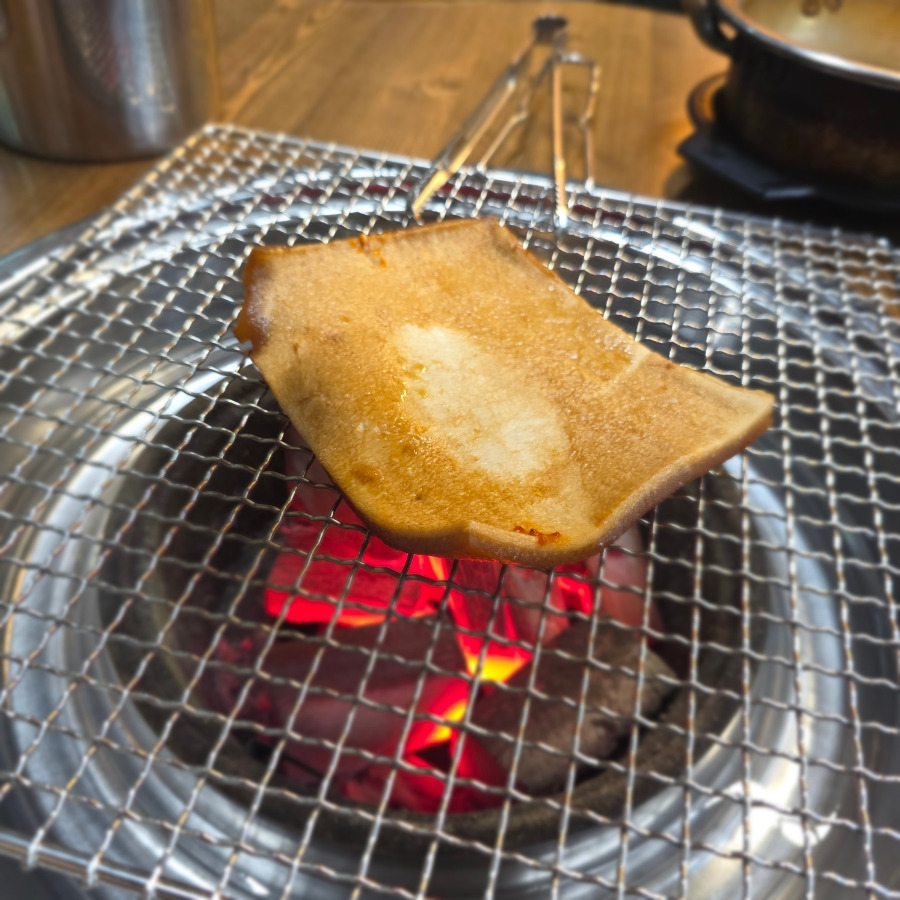 먼저 돼지껍데기를 서비스로 구워주시는데 이게 또 진짜 핵맛