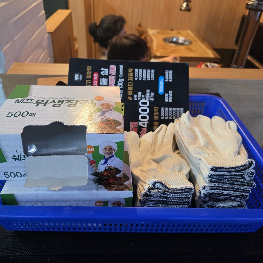 앞치마랑 장갑은 셀프라 편하게 가져다 쓰면 돼요