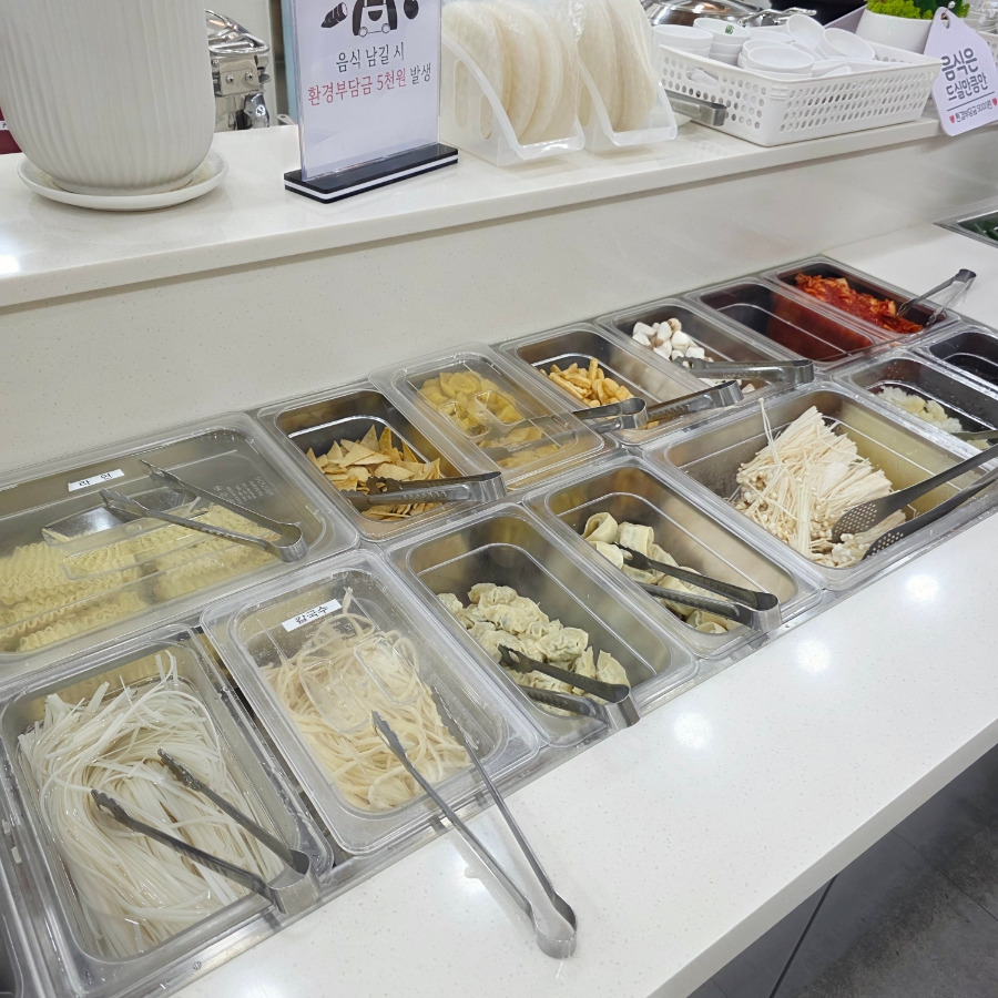 셀프바에는 칼국수 사리도 있어서 면을 넣어 먹어도 되지만 저희는 밥을 넣어서 든든하게 마무리를 했답니다
