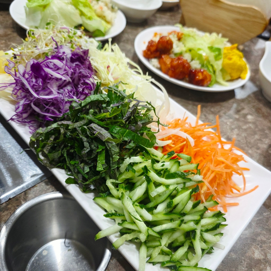 샐러드바에는 샤브샤브용 채소뿐만 아니라 다양한 사이드 음식들도 준비되어 있었어요