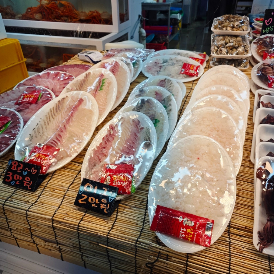 요즘 매천시장이 수산물도 다양하고 바로 쪄서 2층에서 먹을 수 있어서 인기가 많더라고요
