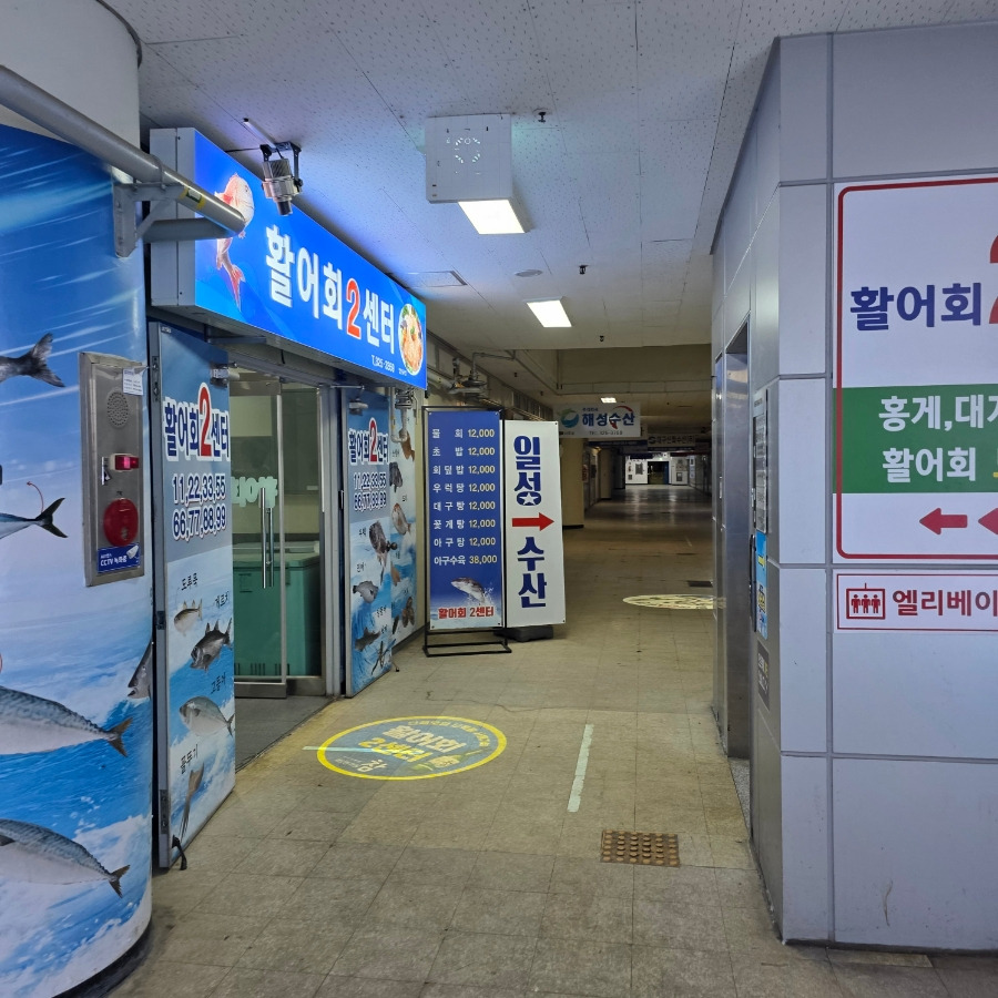 킹크랩이 다 쪄지는 동안 안내받은 곳은 매천시장 2층 일성수산회센터였어요