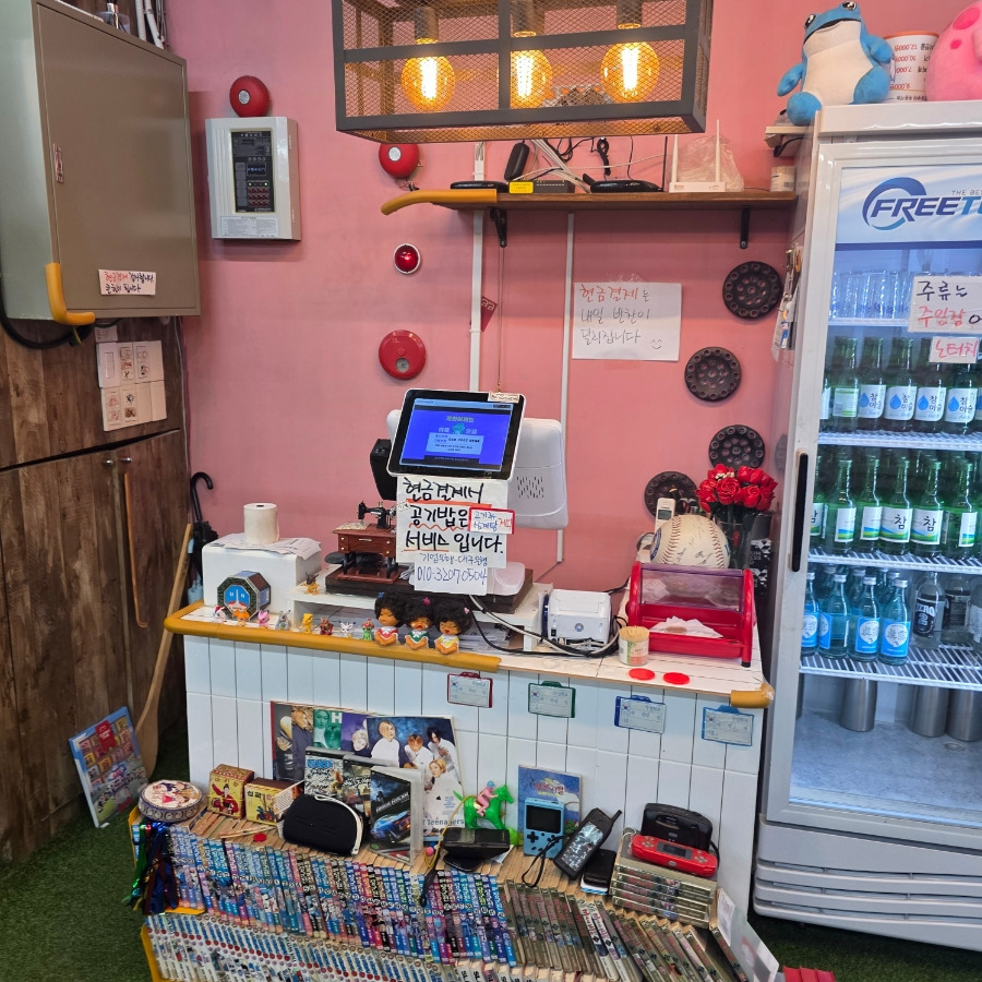마지막 계산대 앞에는 복고풍의 인테리어도 만나보실 수 있어요