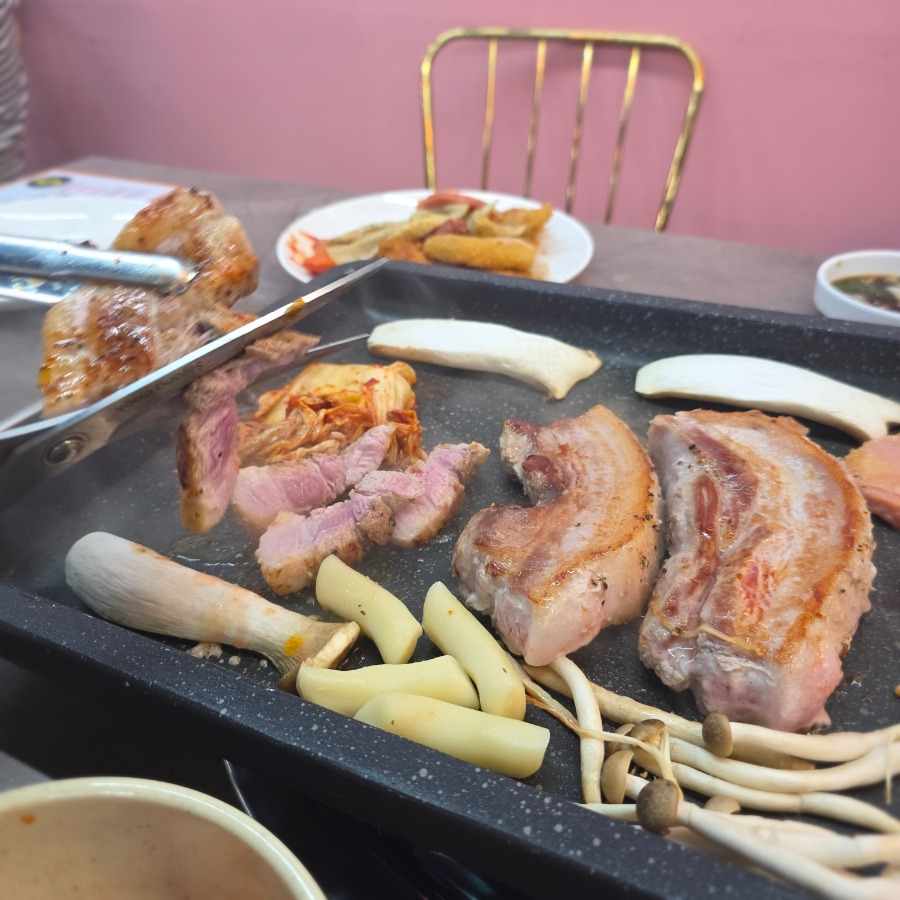 삼겹살이 엄청 도톰해서 굽는 맛도 있었어요!