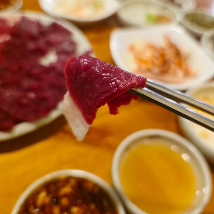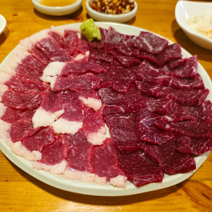 메뉴는 뭉티기, 육회, 전골류 등 다양한 메뉴가 있었는데 그중에서 눈에 띄었던 게