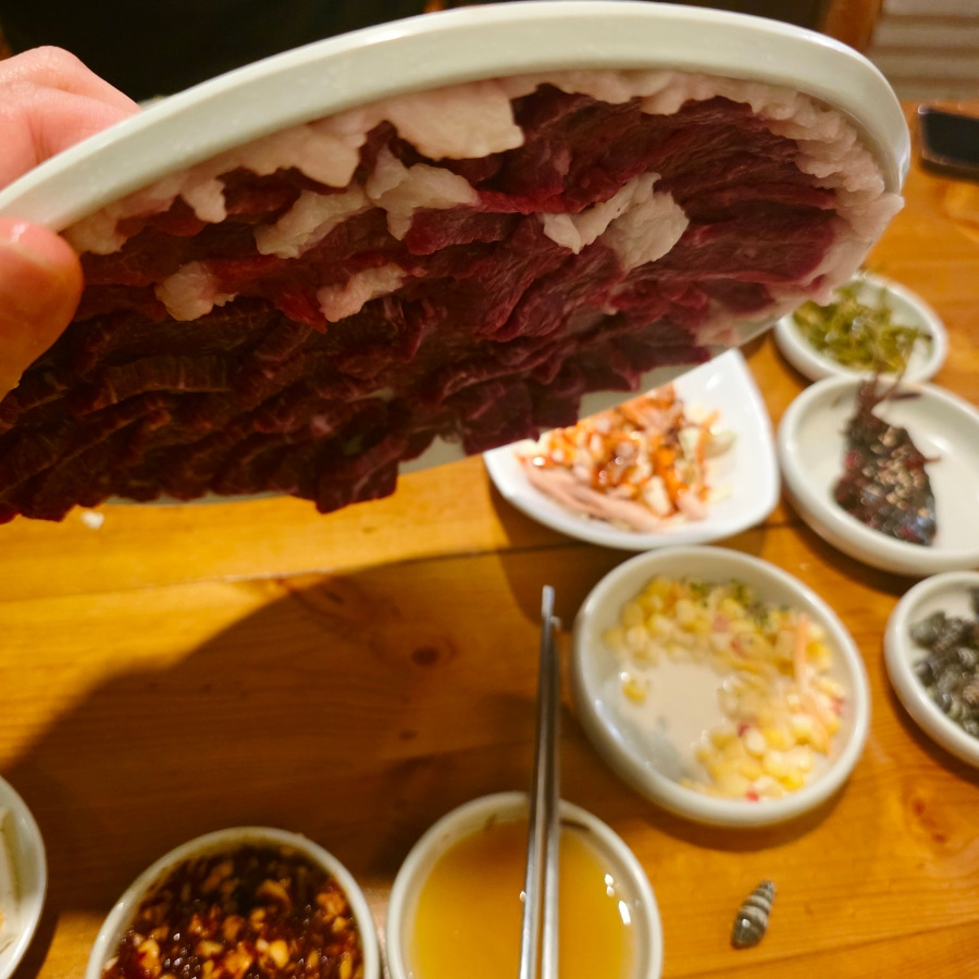 특히 양반김에 뭉티기를 올려서 먹으니까 진짜 꿀조합이더라고요