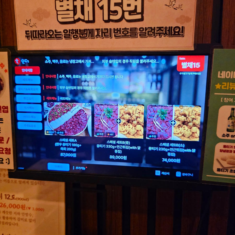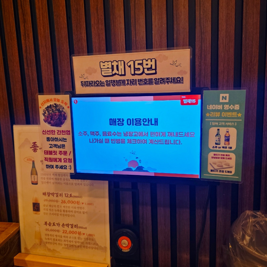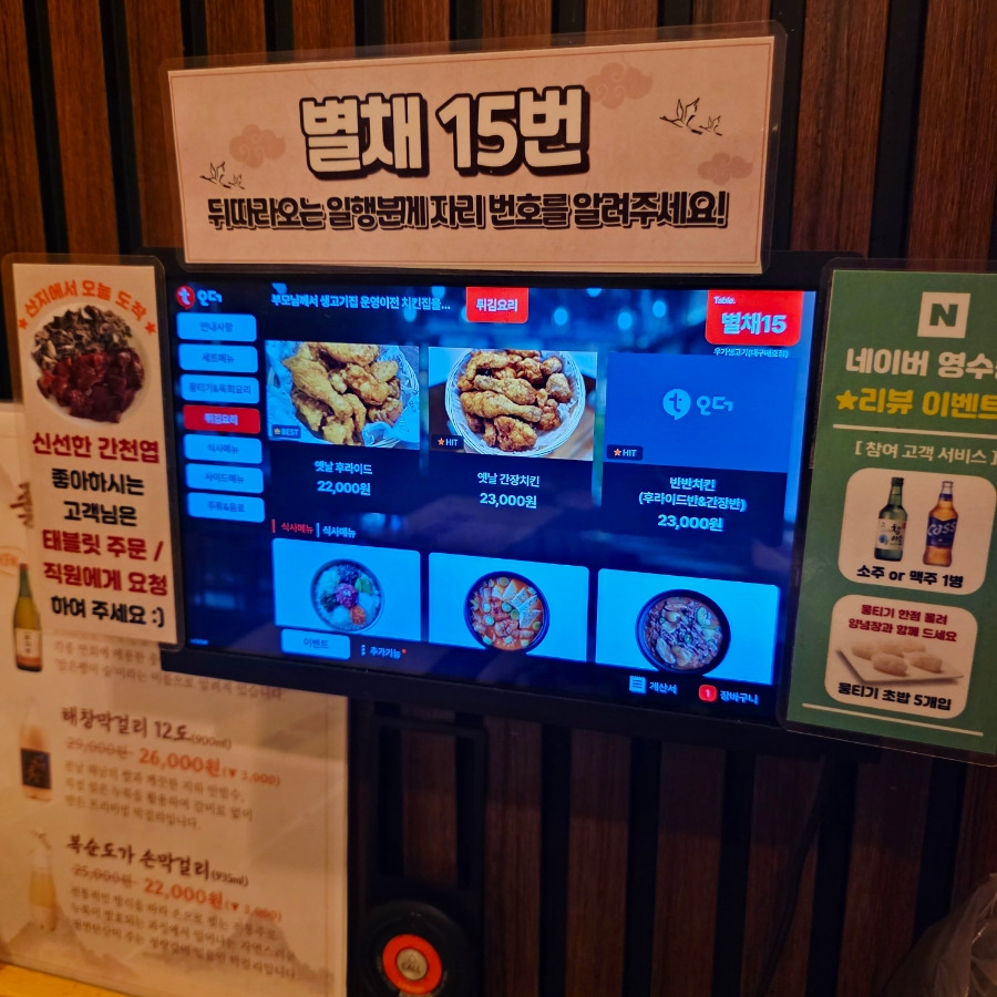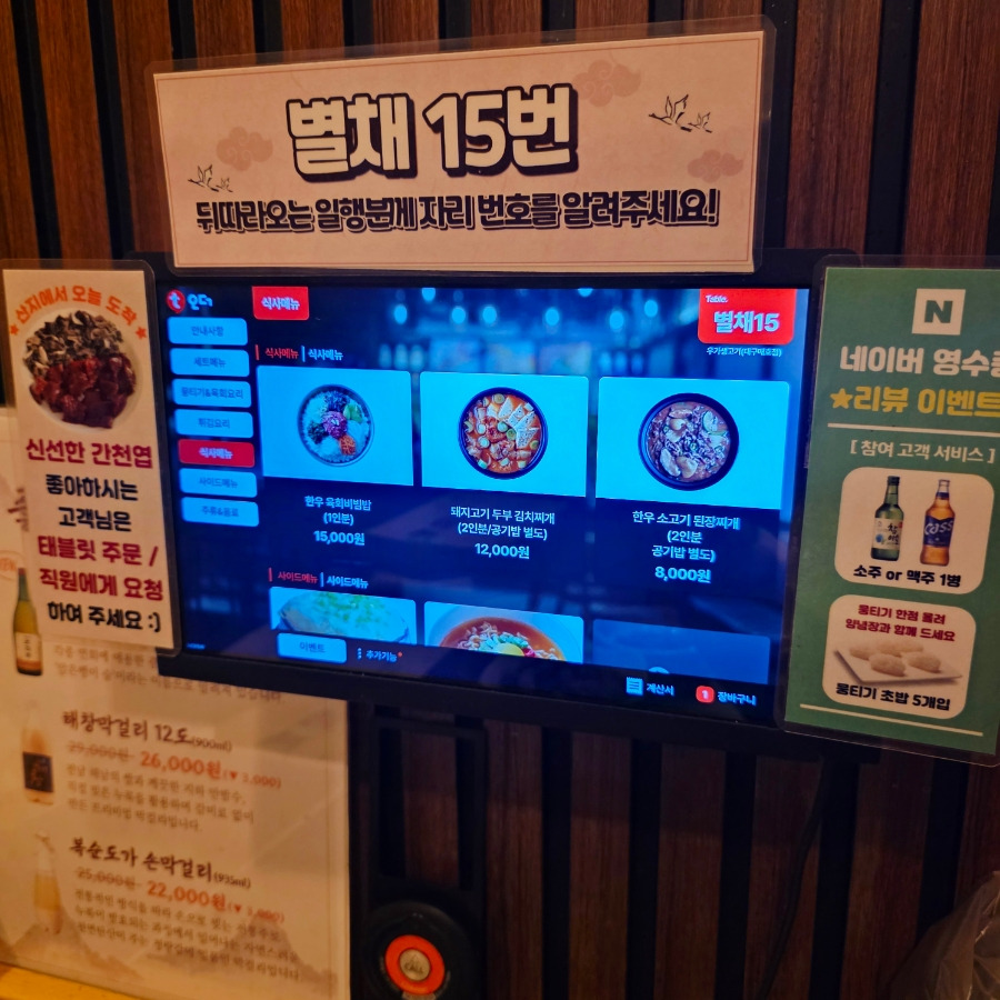 테이블에 있는 키오스크로 주문하는 방식이였고 주류와 음료는 냉장고에서 셀프로 꺼낼수 있어서 은근히 편했답니다