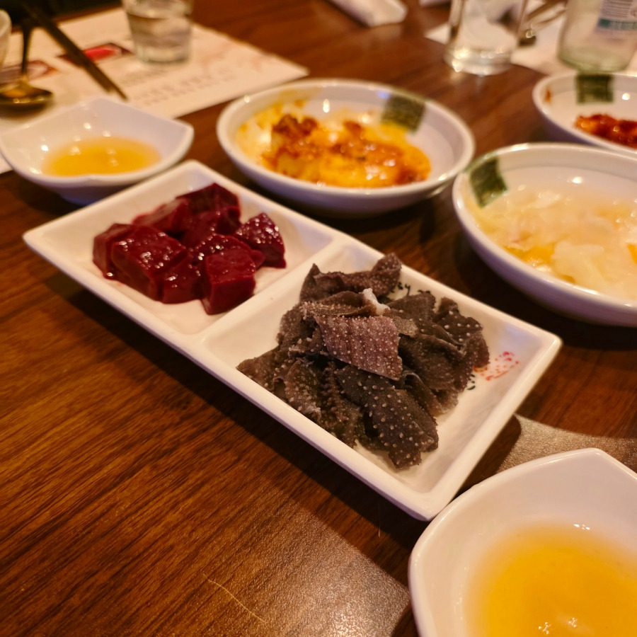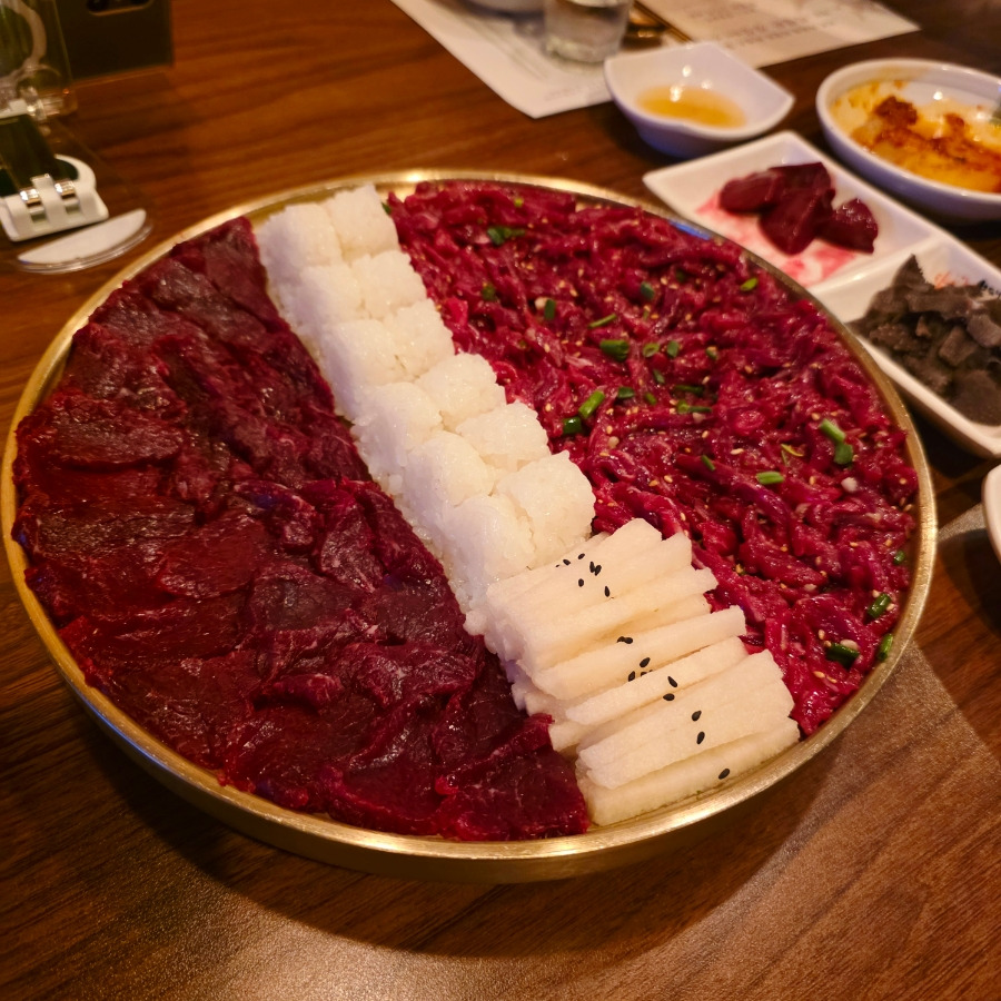 뭉티기는 쫀득한 식감이 살아 있어서 정말 맛있었고 육회도 양념이 과하지 않고 담백해서 계속 손이 가는 맛이었답니다