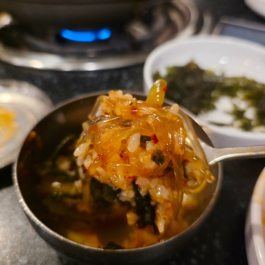 물이 점점 짜져서 육수를 부탁드렸더니 육수를 테이블에 그냥 툭 내려놓고 가시는 태도도 솔직히 기분이 좋지는 않았어요