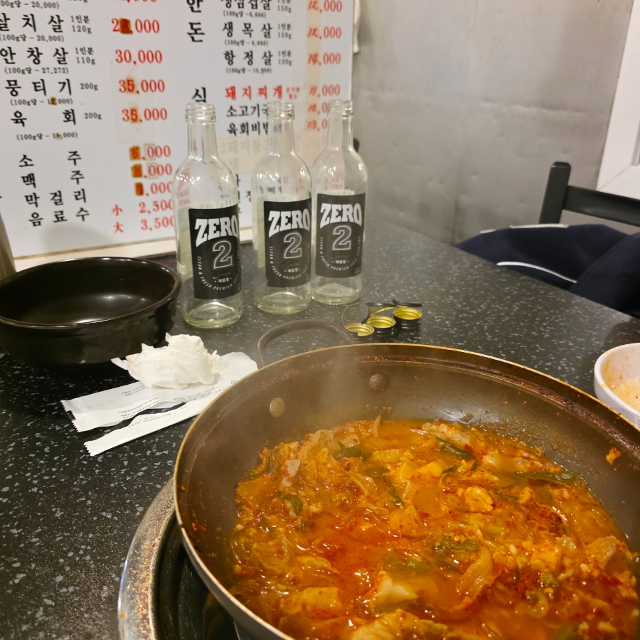 돼지찌개에는 역시 술이 빠질 수 없어서 반주로 소주 3병 정도 마셨는데