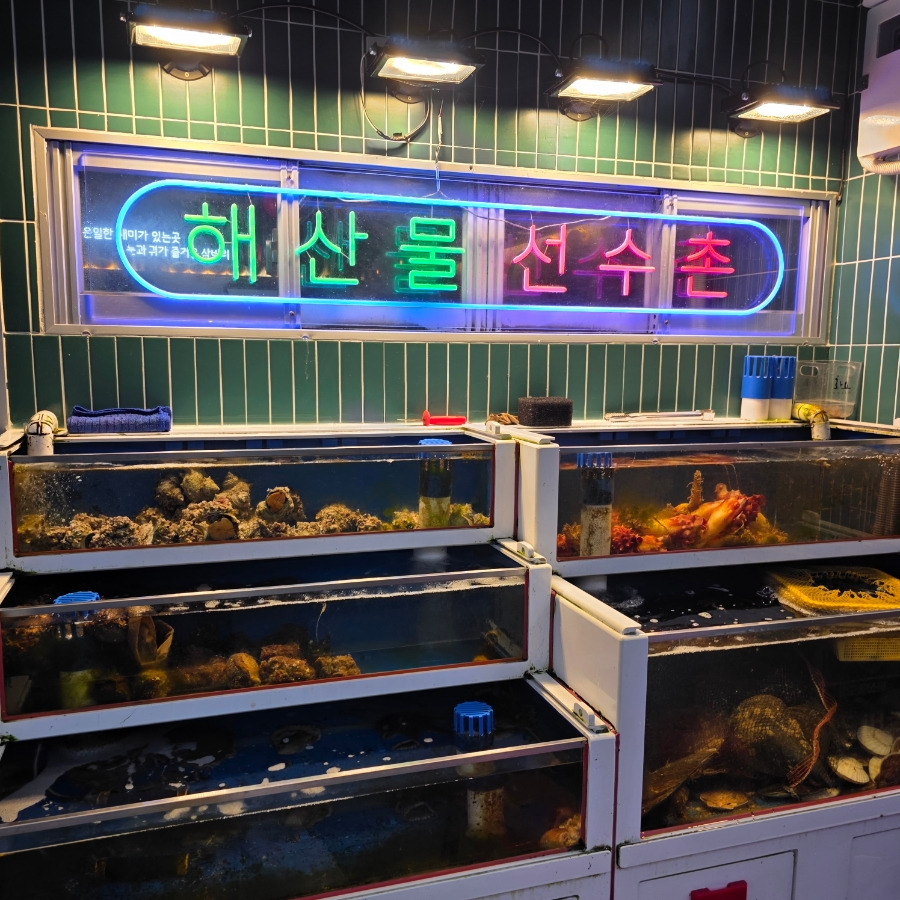 입구부터 싱싱한 바다 향이 솔솔 들어서자마자 신선한 해산물이 진열된 해산물 코너가 눈에 들어왔어요