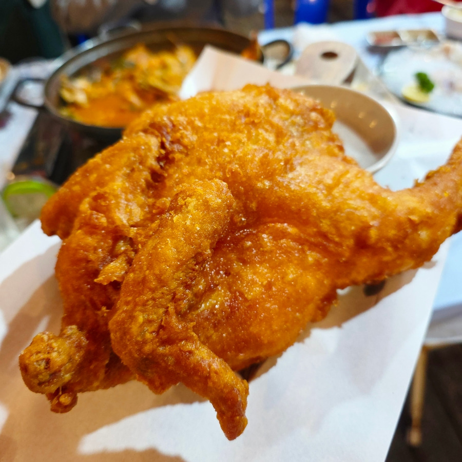 회랑 튀김 먹고 난 뒤에 매운탕 한 숟갈이면 진짜 완벽