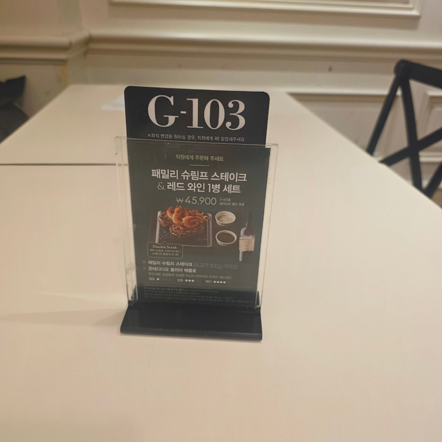 저희는 G-103 번 테이블로 안내받았어요