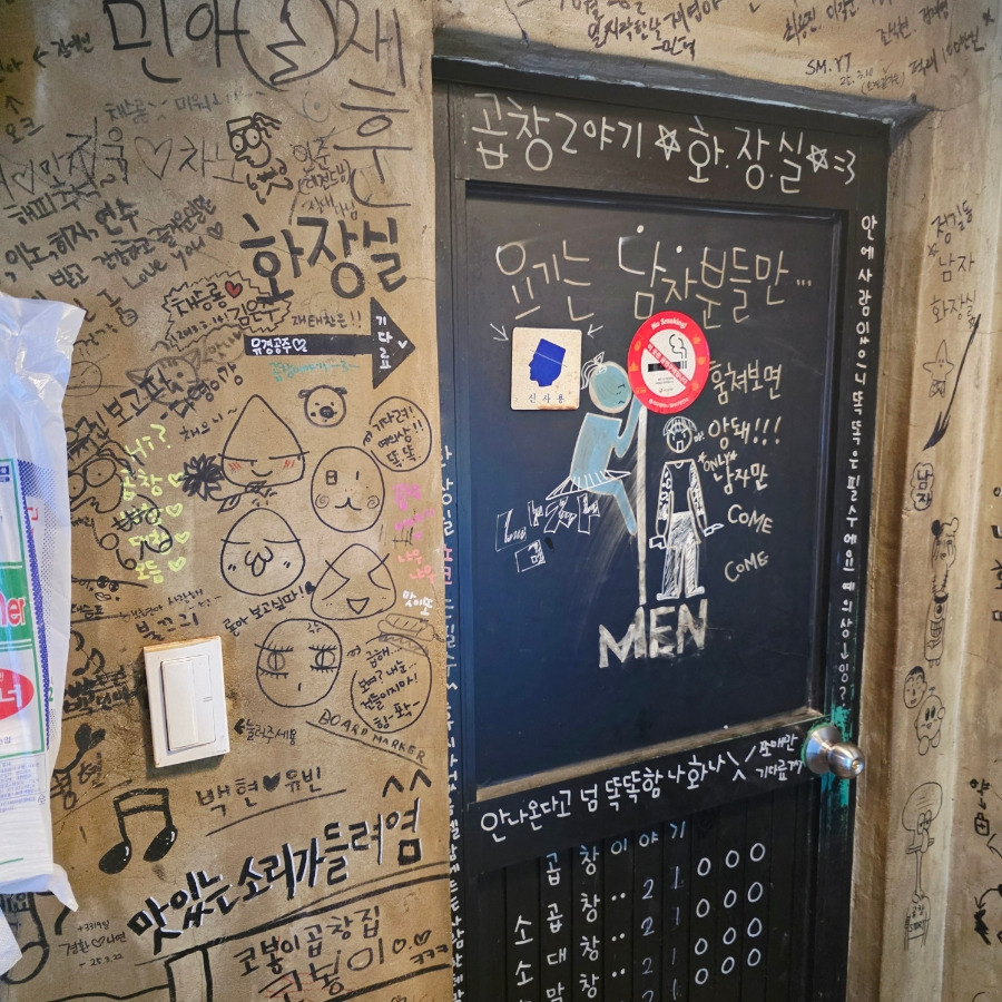 벽마다 손님들이 남긴 낙서가 가득해서 오래된 단골 맛집 느낌이 물씬 느껴지죠?