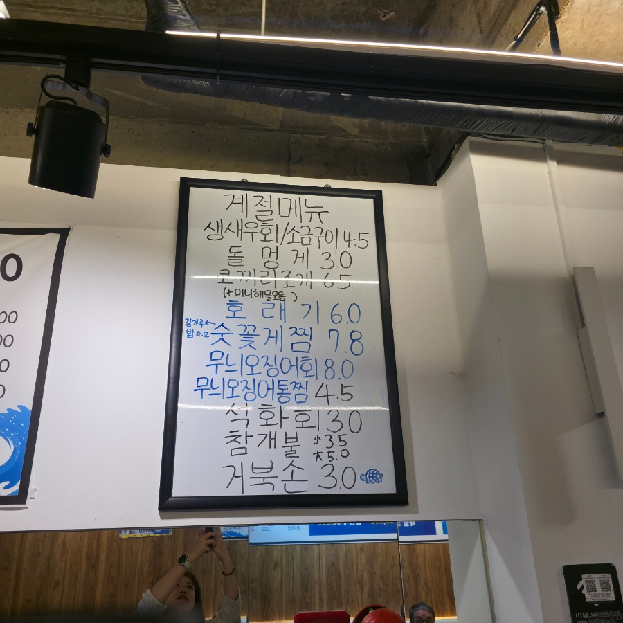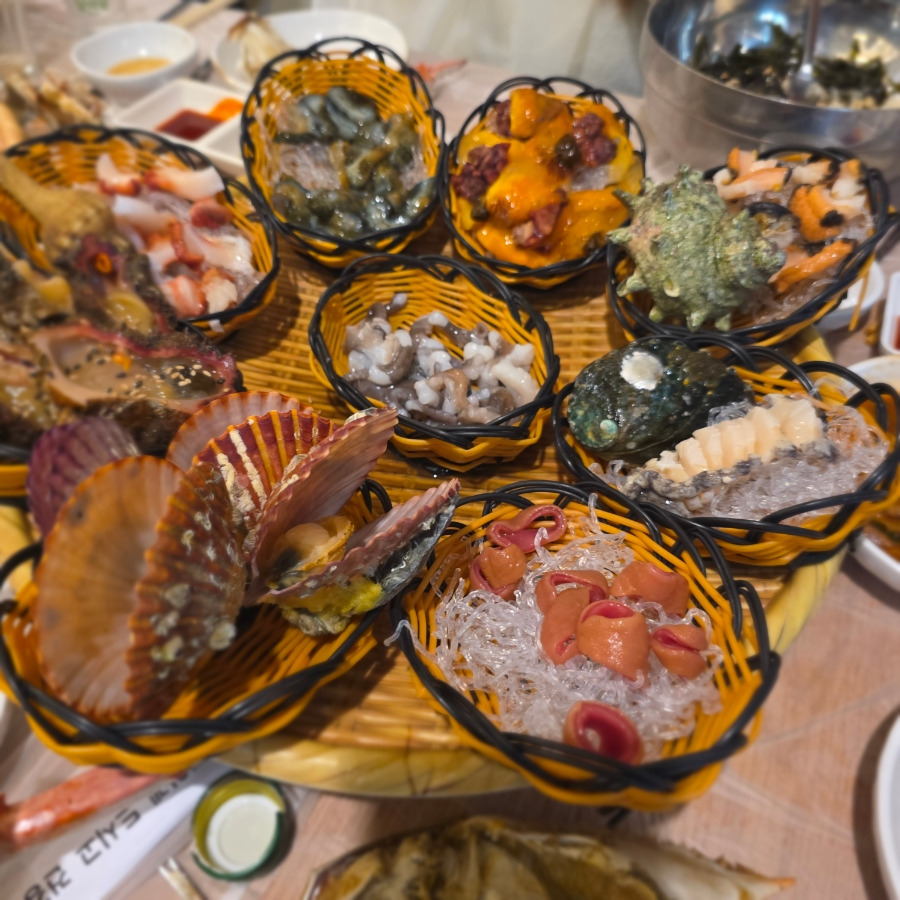 멍게, 해삼, 개불, 뿔소라, 산낙지, 조개찜, 돌멍게까지