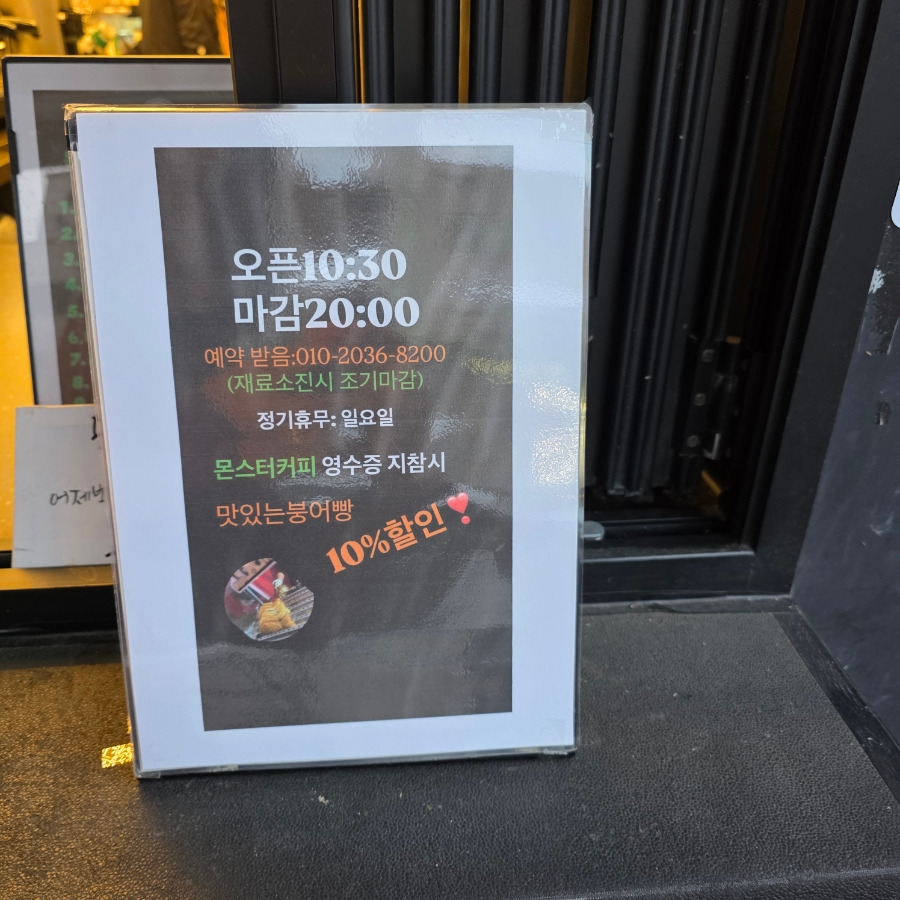 여기서 커피를 사면 바로 앞 붕어빵 가게에서 영수증 보여주면 10% 할인!!