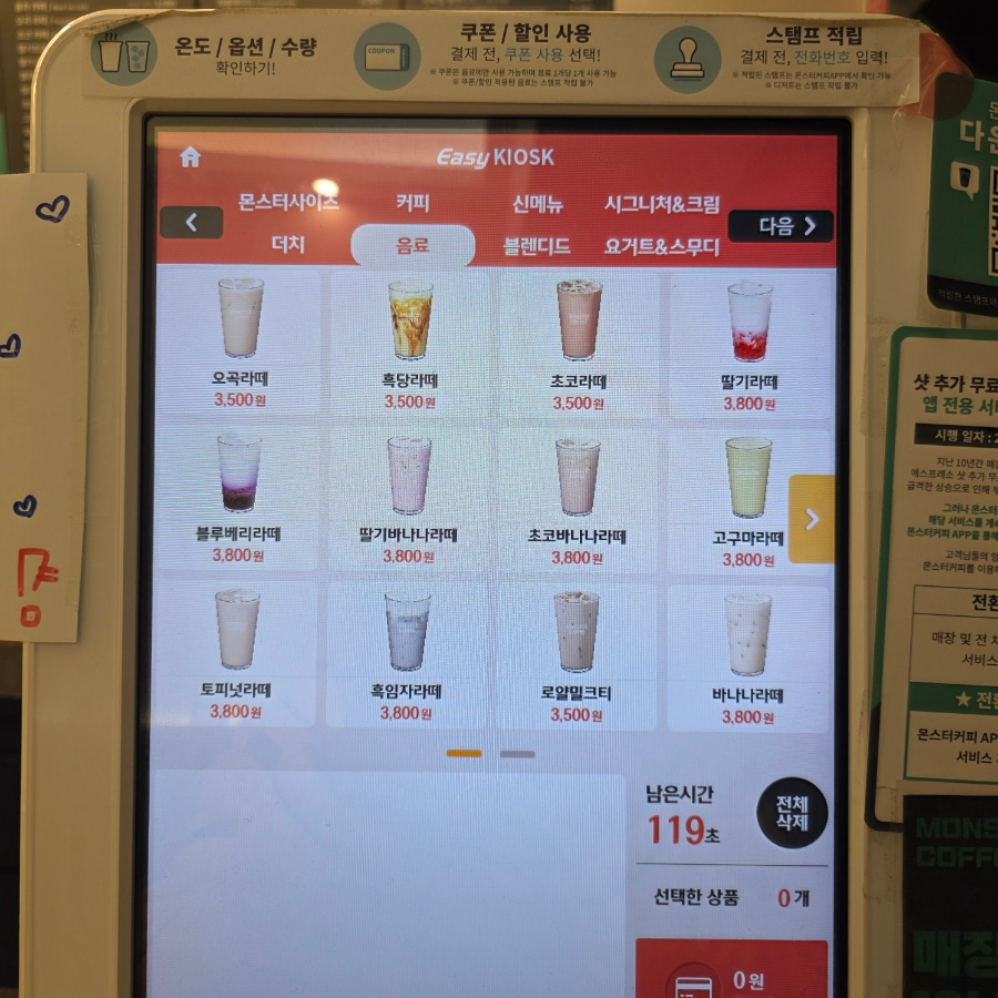 몬스터커피 황금점은 커피도 맛있었지만 사장님이 너무 친절하시고 가게 분위기나 문구들 덕분에 마음이 따뜻해지는 시간이었어요