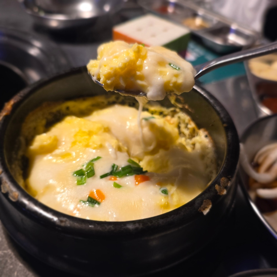 기본으로 나오는 계란찜에 치즈가 들어 있어서 부드럽고 고소한 치즈 향이 살짝 느껴져서 맛있었어요