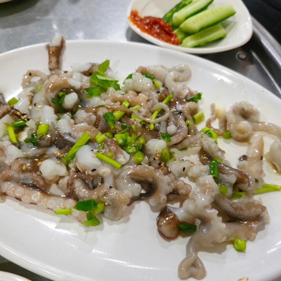 원래 굴도 먹고 싶어서 물어봤는데 아쉽게도 이미 매진이라서 대신 산낙지를 추가로 주문!!