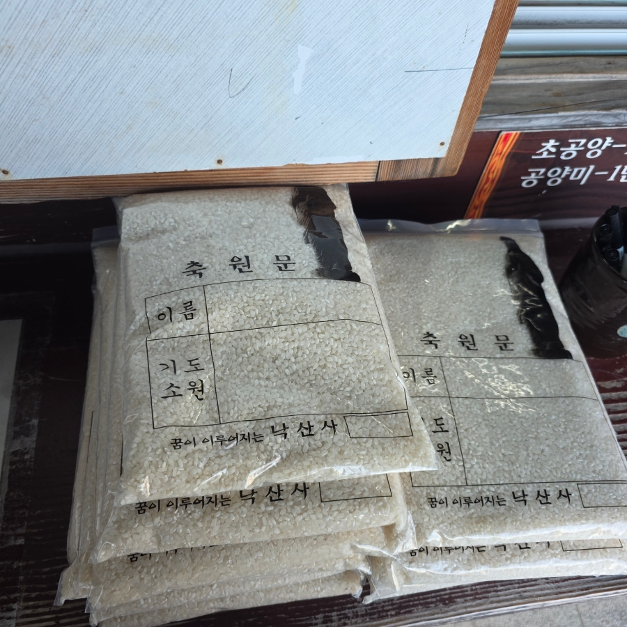 쌀을 사서 해수 관세음 보살상에 올리고 축원문을 적더라고요