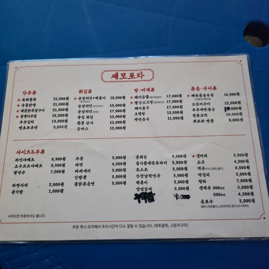 포차라 그런지 안주 메뉴가 엄청 많아서 선택 장애가..