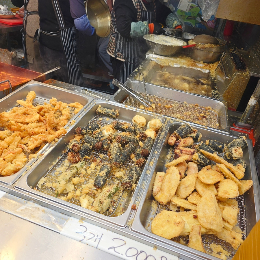 시장 특유의 활기찬 소리와 고소한 튀김 냄새와 떡볶이 양념 향이 섞여서 괜히 배가 더 고파지더라구요