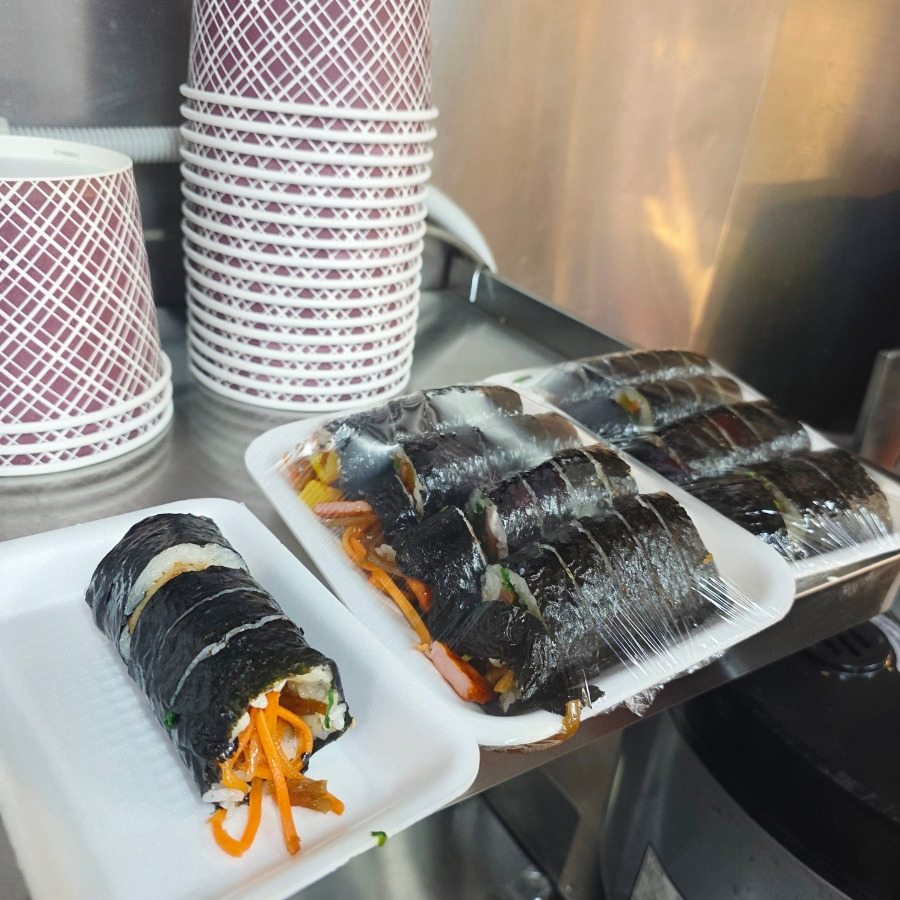 바삭한 튀김옷 안에 김밥이 꽉 차 있어서 한 입 베어 무는 순간 김밥맛과 튀김의 고소함이 확 퍼지더라구요