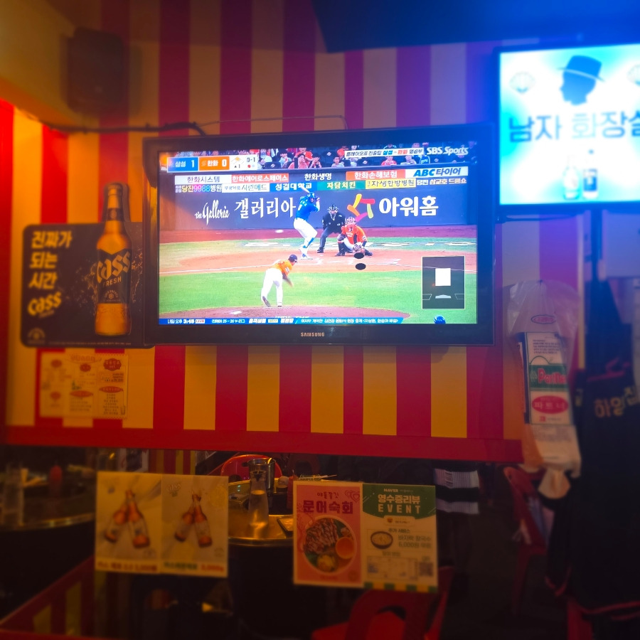 광장코아점의 좋은 점 중 하나는 야구 시즌에 야구 중계를 틀어준다는 점!