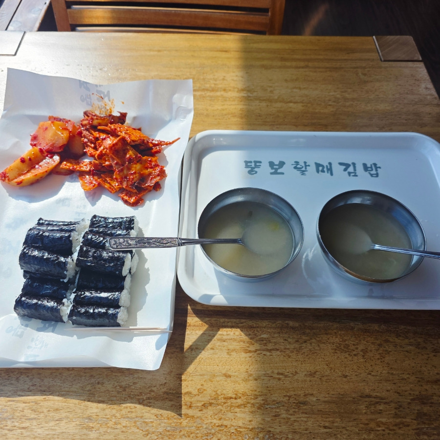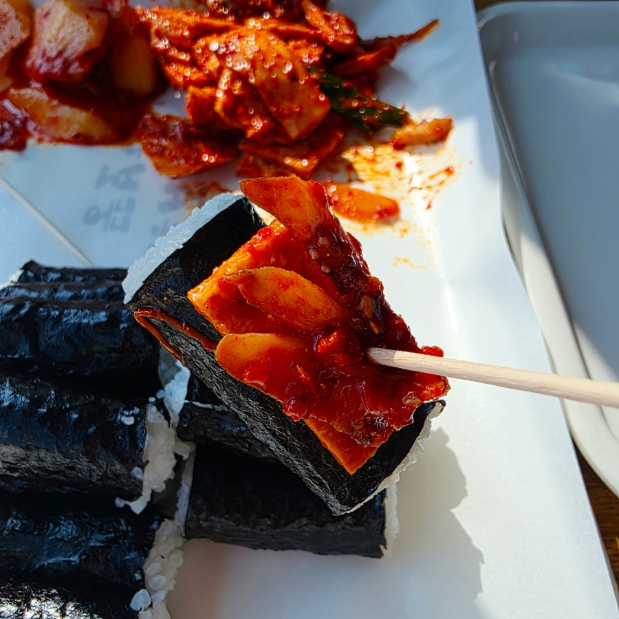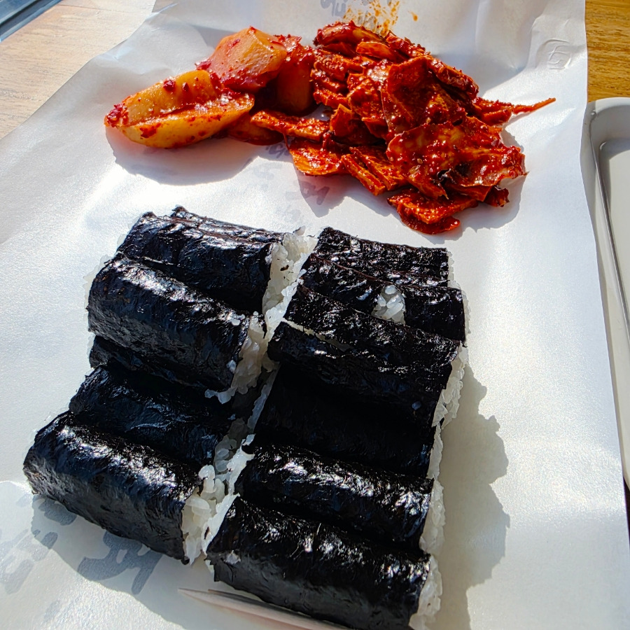 비주얼은 익숙하면서도 깔끔했고 김밥은 밥만 들어 있는 담백한 타입이라 깍두기가 사실상 맛의 핵심이었답니다