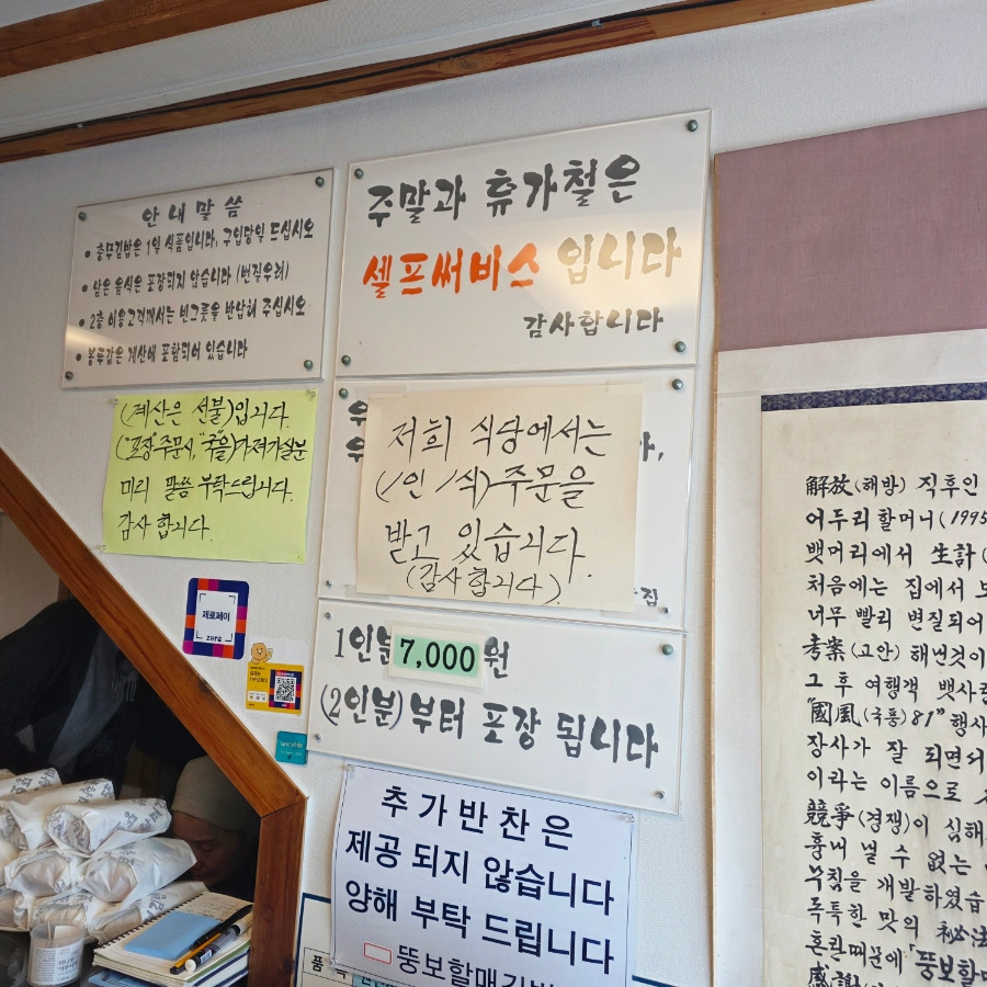 메뉴는 충무김밥 하나로 1인분에 7,000원이었고 포장은 무조건 2인분 이상부터 가능하다 해요