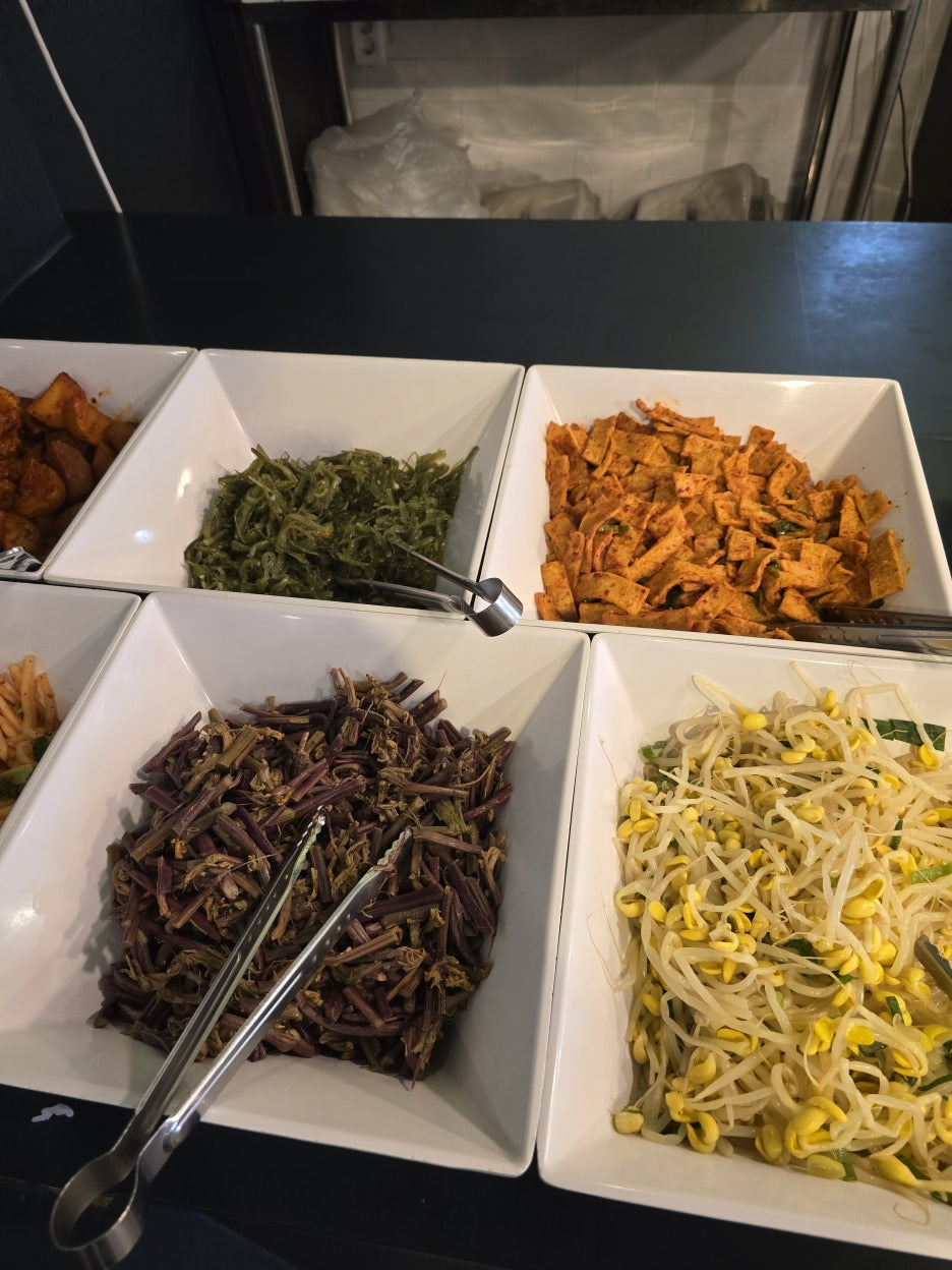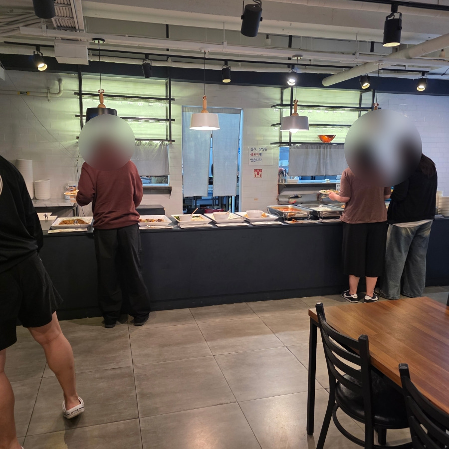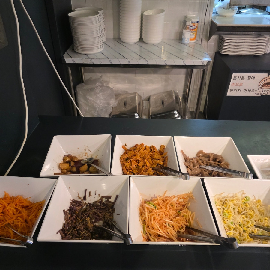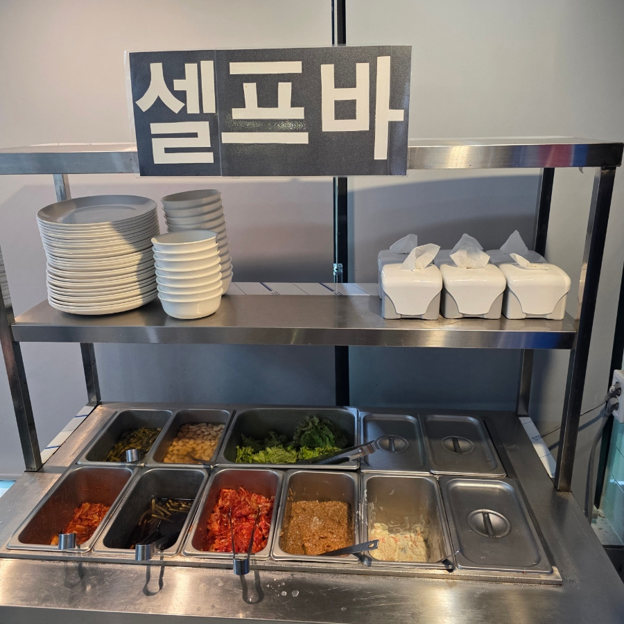 야채와 김치류는 따로 마련된 셀프바에서 원하는 만큼 가져다 먹을 수 있었어요