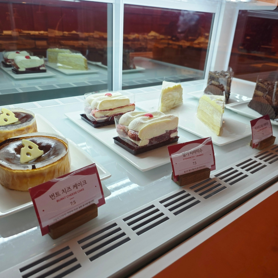 케이크, 빵, 달달한 디저트들이 쭉 진열되어 있어서 눈이 먼저 즐거워지는 그런 느낌