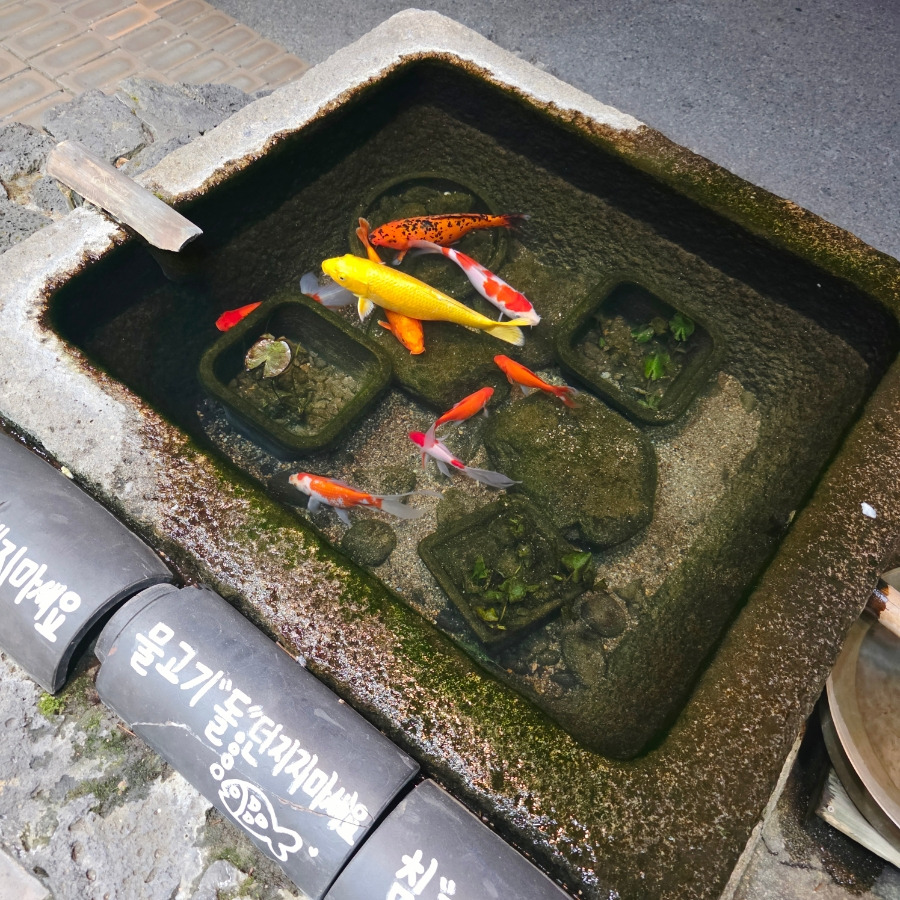 찜질 끝내고 나오다가 다른 쪽 입구에 잉어가 있길래 신기해서 괜히 한참 보고 있었네요