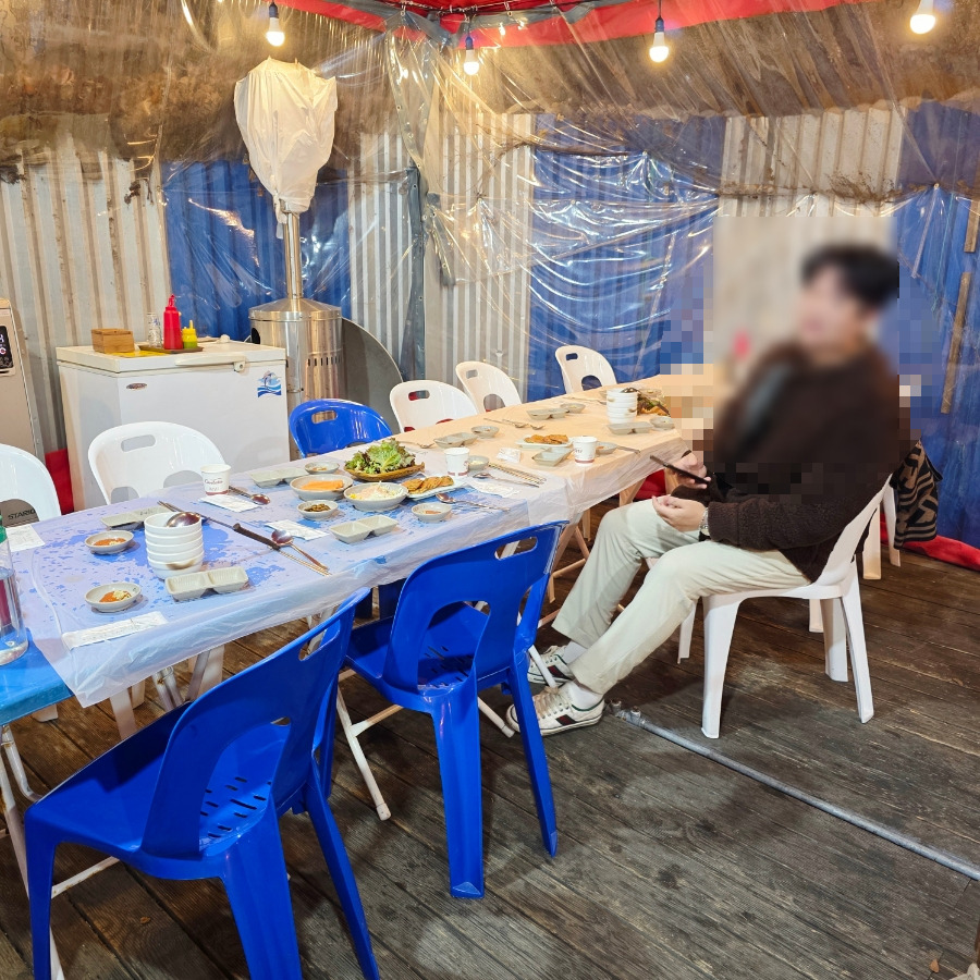 야외 포장마차 테이블에서 먹었던 기억이 너무 좋아서 이번에도 미리 야외 테이블로 예약하고 갔어요