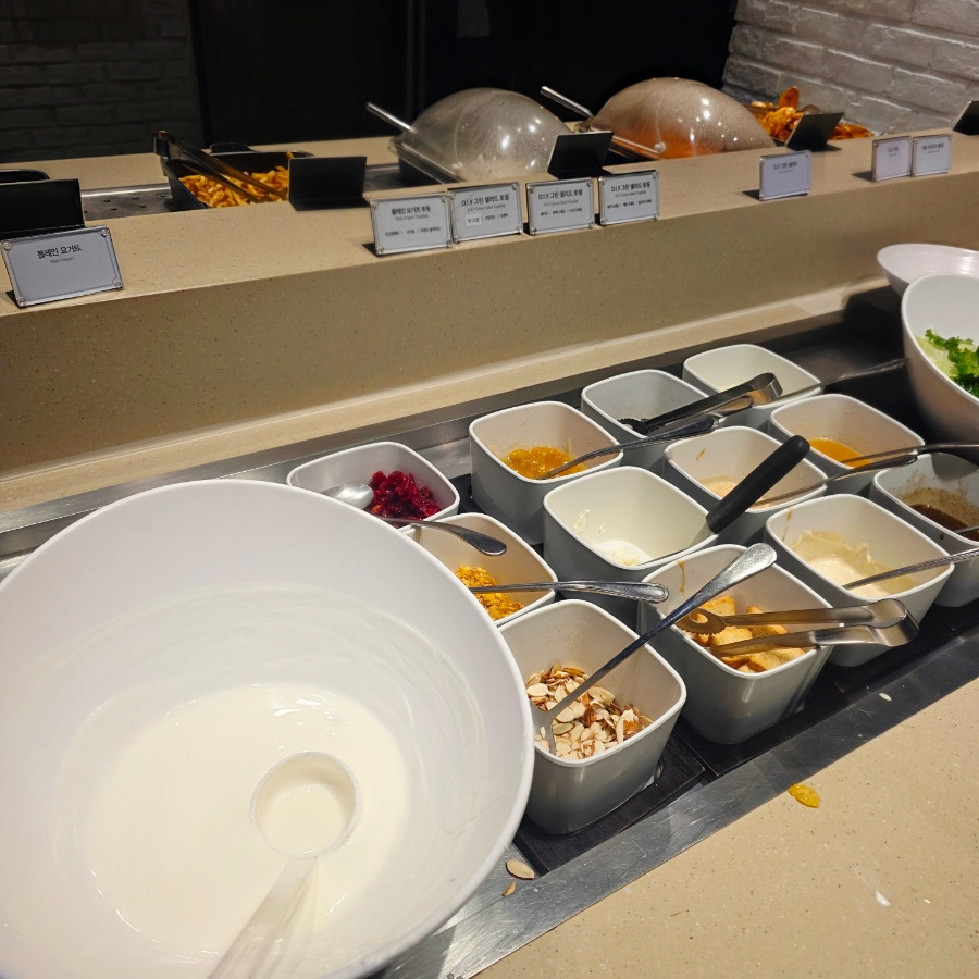 자리에 앉자마자 바로 뷔페 코너로 출동했어요
