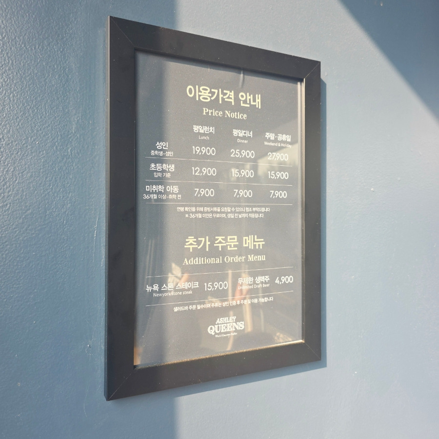 애슐리 퀸즈는 가격대가 미리 정해져 있어서 선택하기 편했어요