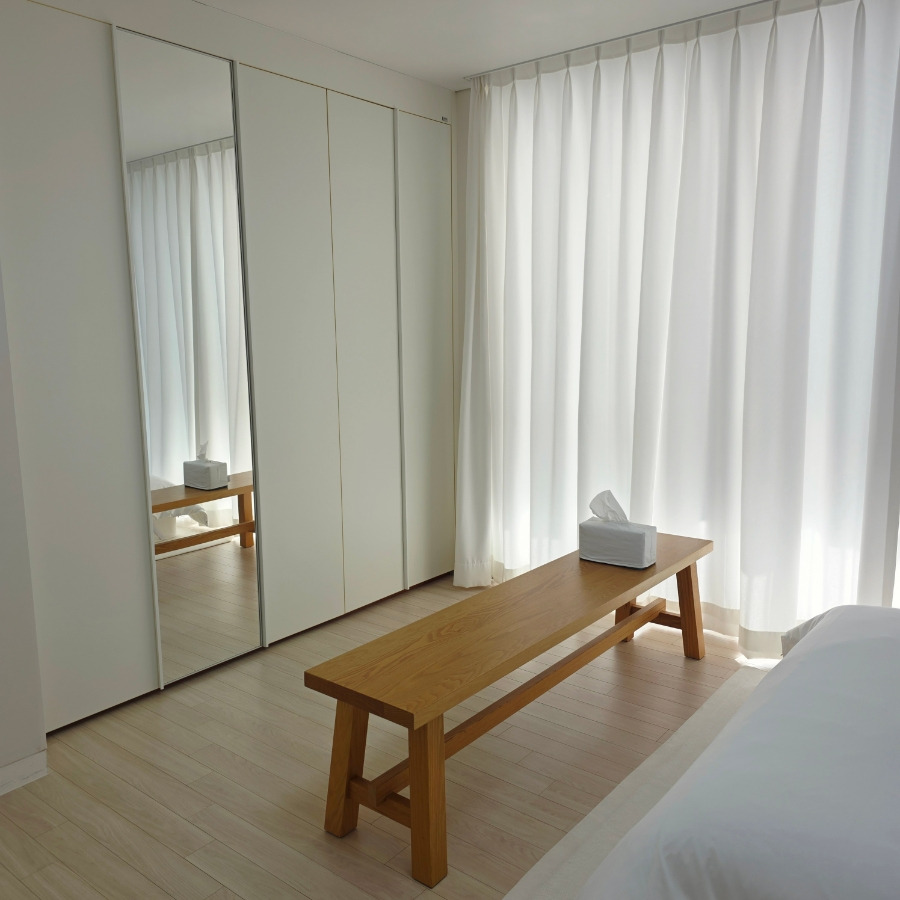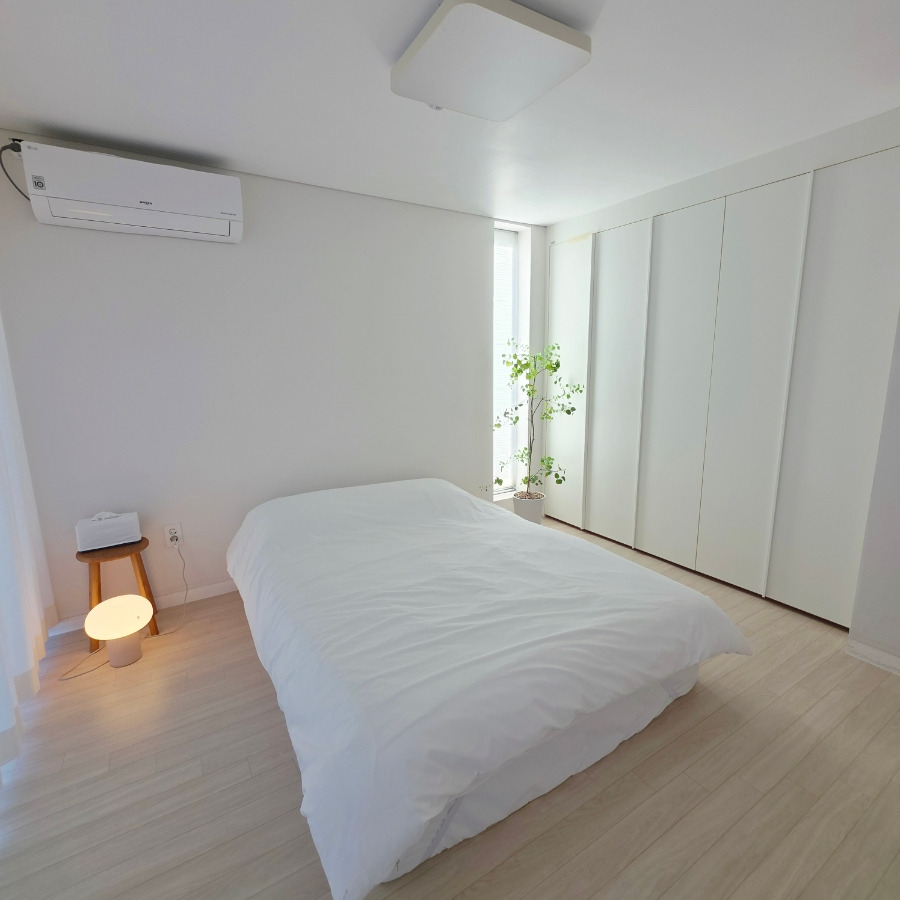 각 방마다 붙박이장이 있어서 짐 정리하기 좋았고 방마다 토퍼가 있어서 사용하실 분들은 사용하셔도 된답니다