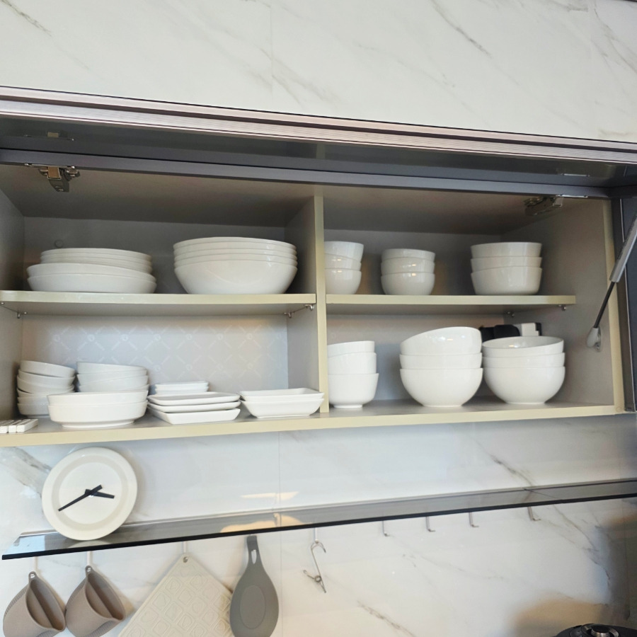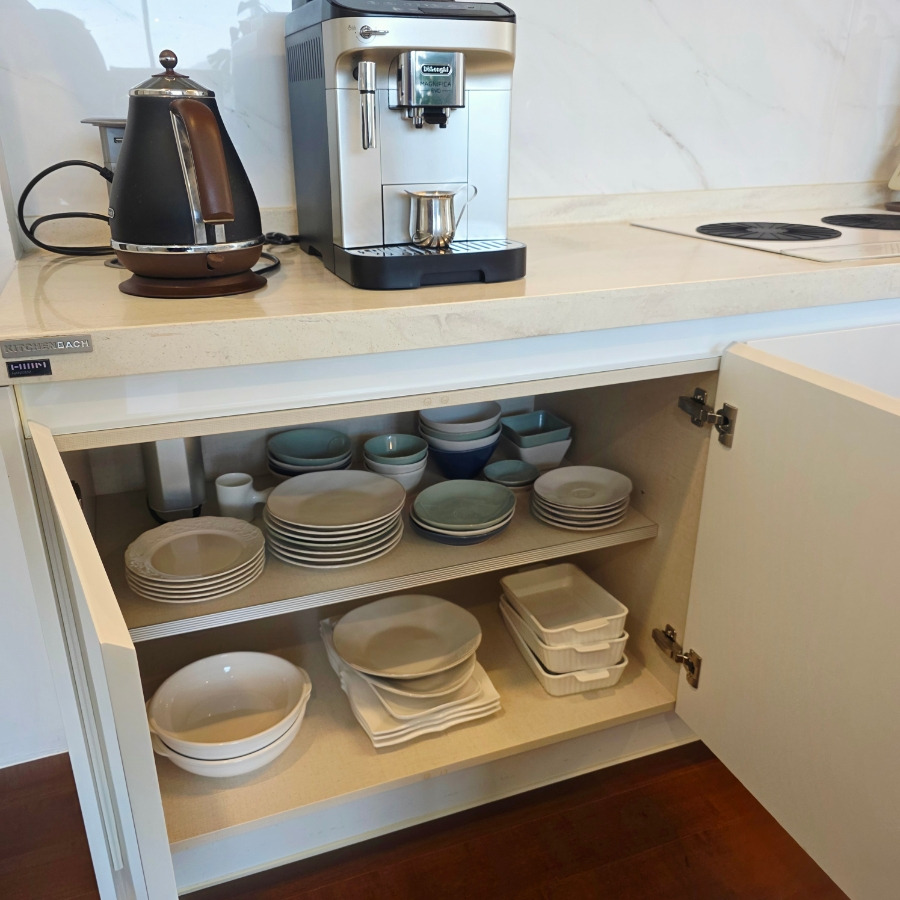 찬장마다 접시와 그릇들이 다양하게 준비되어 있어서 단체도 부족하지 않을 정도였답니다