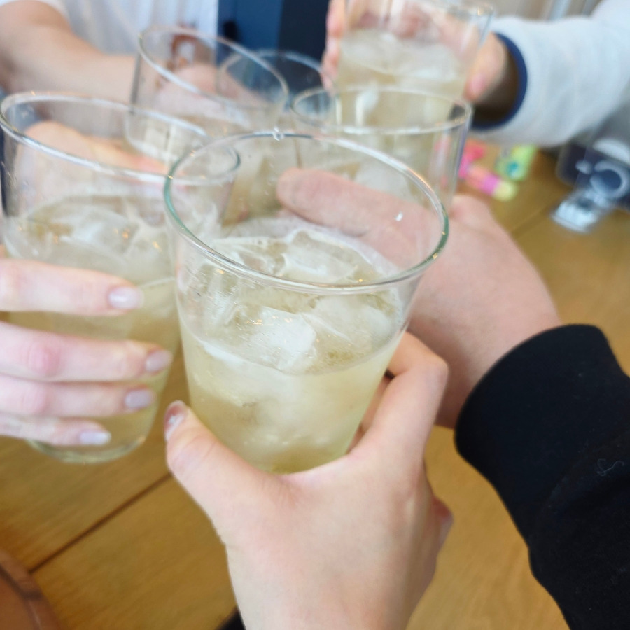 손질을 끝내고 술의 시작을 알리는 하이볼로 다들 한 잔씩 했답니다