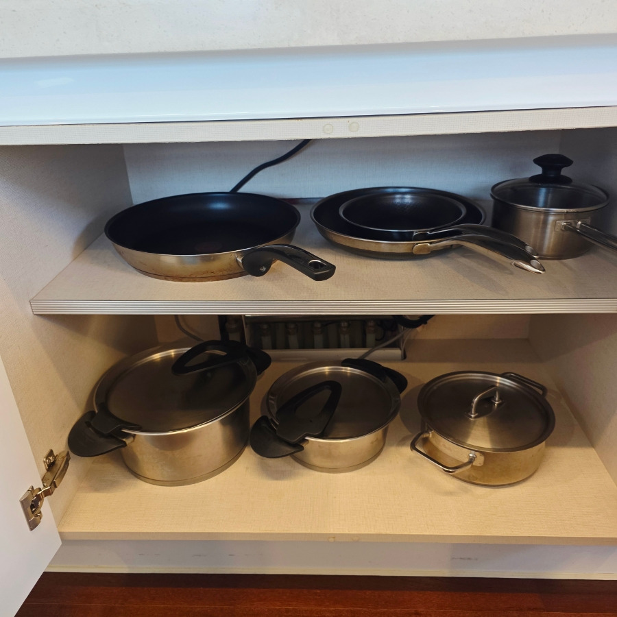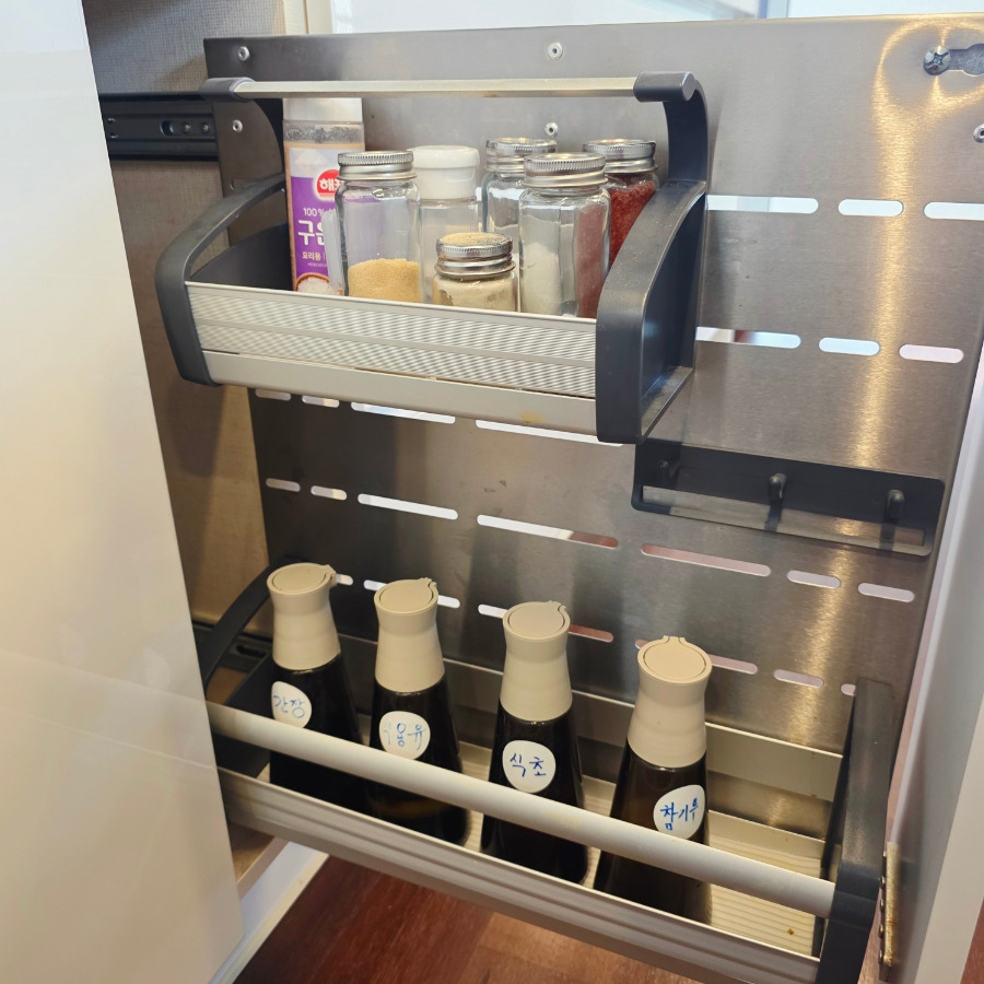 후라이팬이나 냄비도 종류별로 잘 갖춰져 있었고 소금, 후추, 설탕 같은 기본 재료들도 다 구비되어 있어서 진짜 몸만 와도 될 정도