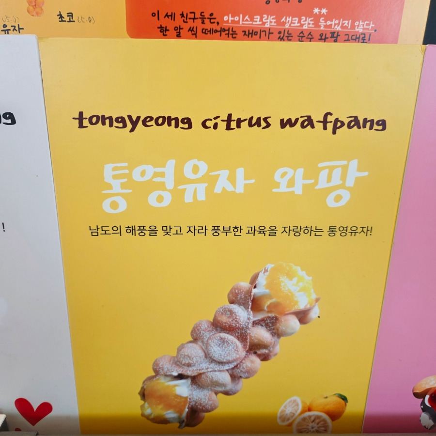 반반 와팡, 생크림 와팡, 통영 유자, 딸기, 초코, 오리지널, 까망깨 와팡까지 선택지가 엄청 많았어요