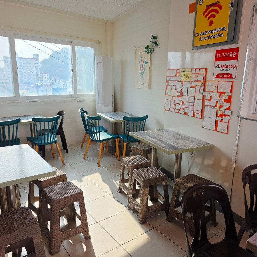 동피랑 와팡은 동피랑 벽화마을 근처에 있어서 관광하다가 쉬어가기 딱 좋은 위치였어요