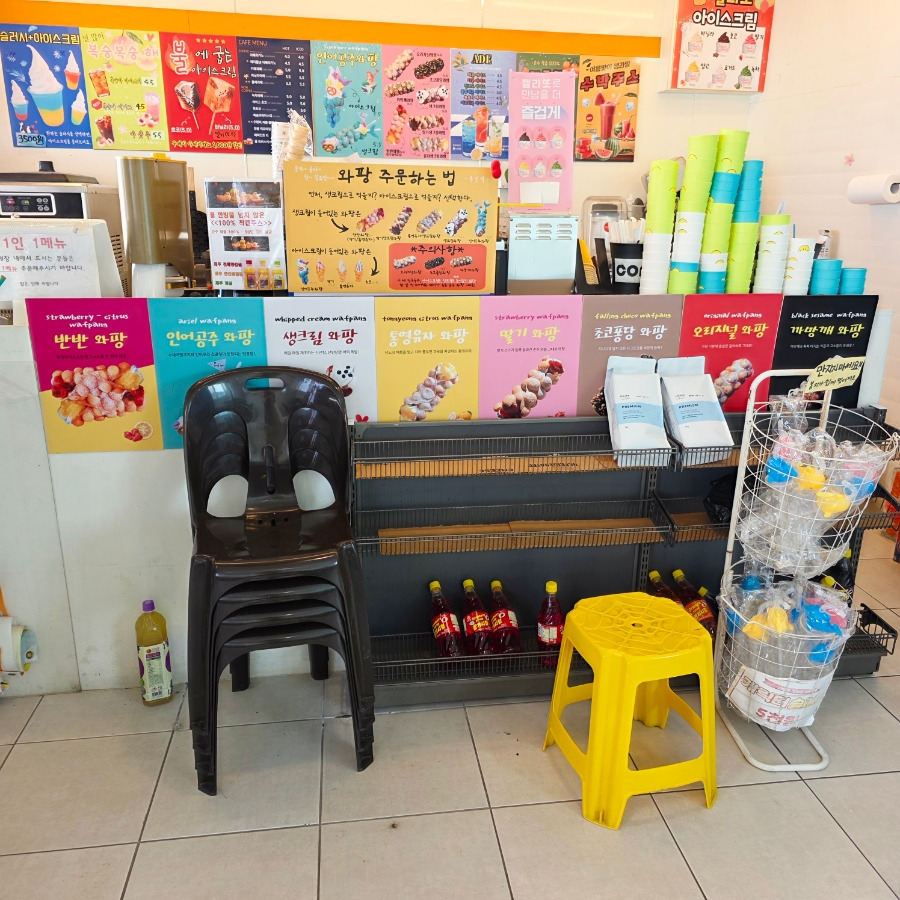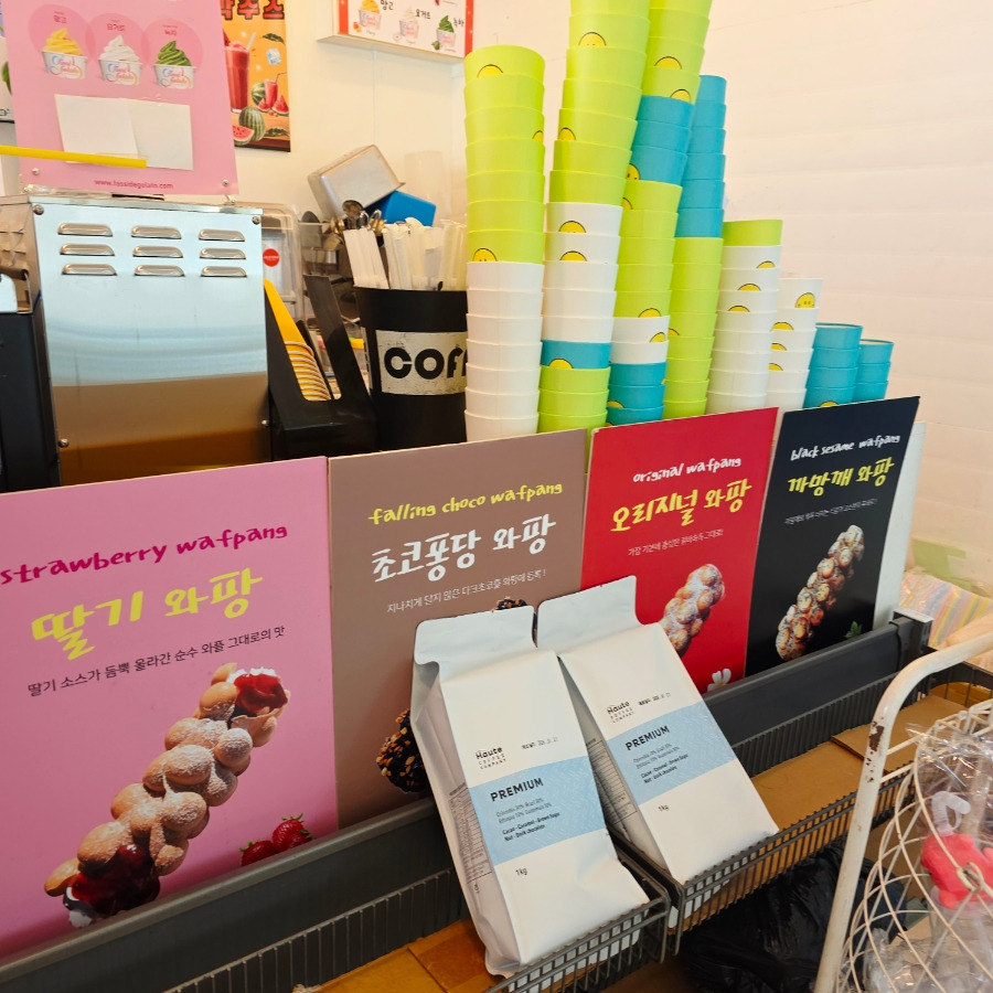 이곳은 와플 말고도 불에 구워 먹는 아이스크림으로도 유명하다고 하던데 아무래도 대표 메뉴는 역시 와팡이더라구요